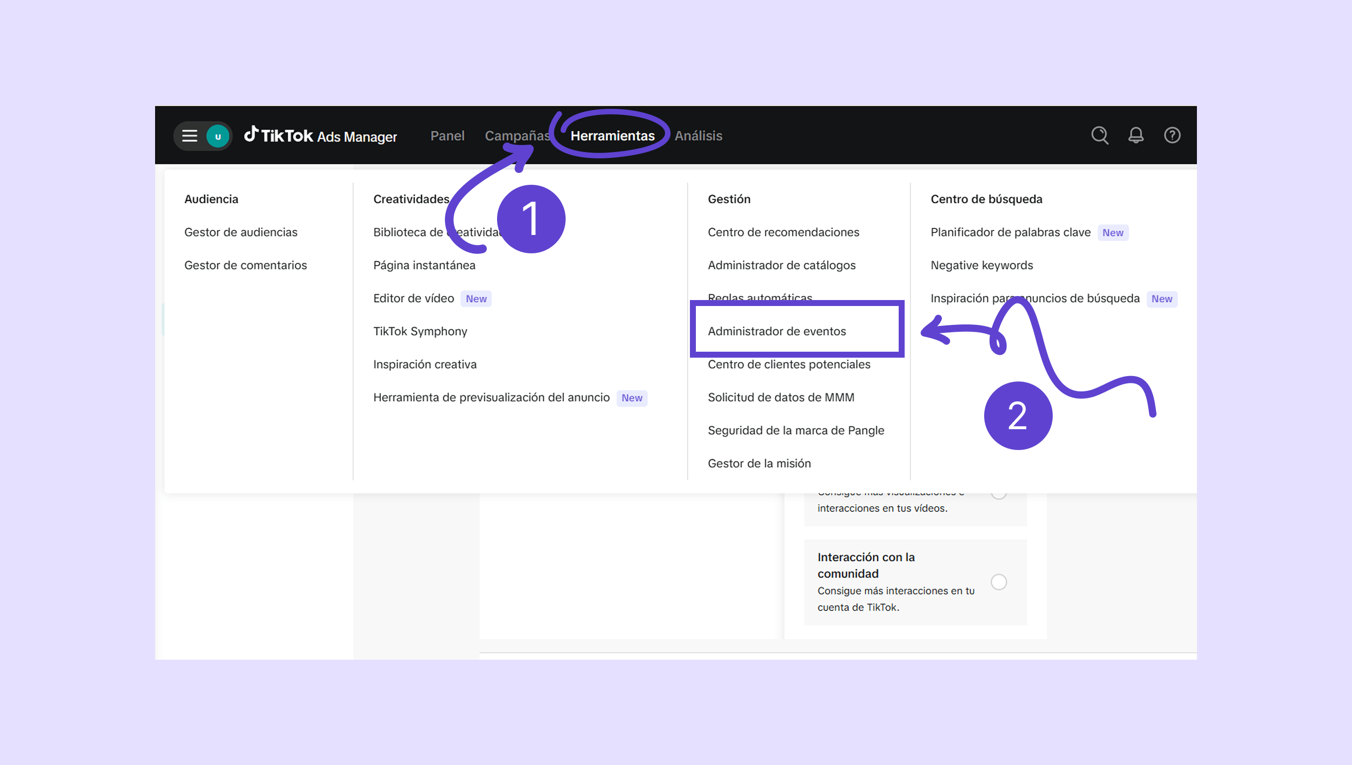 Haz clic en Herramientas → Administrador de eventos.