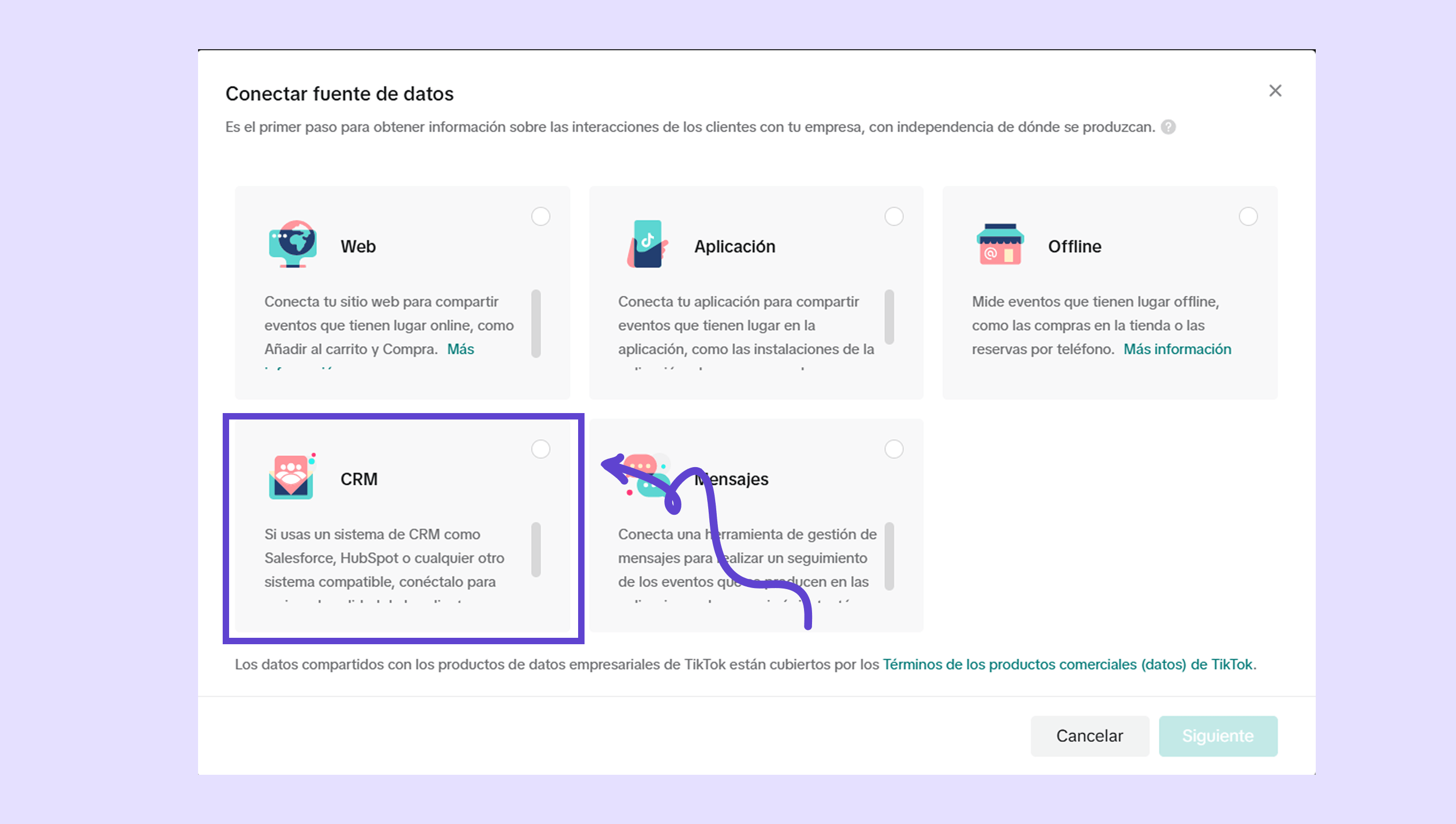 Crea un set de eventos de CRM en TikTok Ads