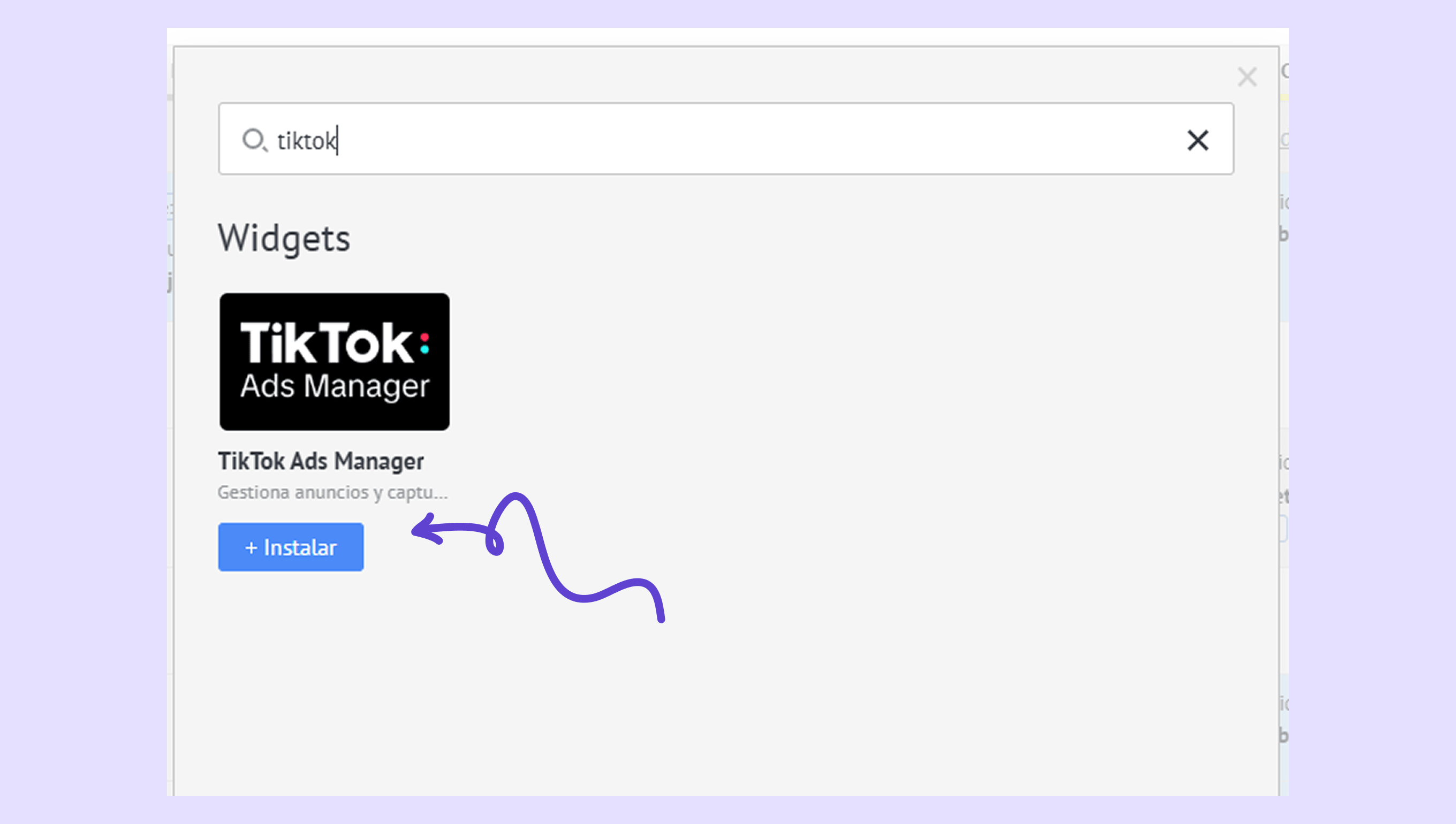 Busca TikTok Ads Manager → haz clic en + Instalar .