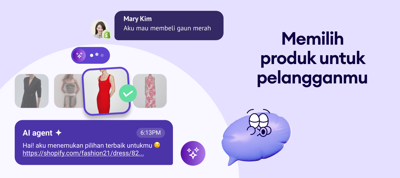 Agen AI ini menggunakan kebijakan perusahaan, informasi produk, dan knowledge base untuk merekomendasikan pilihan, menjawab FAQ, dan melakukan percakapan 24/7 dengan pelanggan kamu.