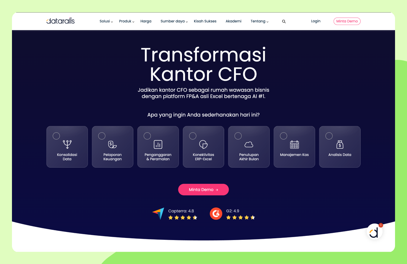Datarails adalah platform FP&A berbasis Excel yang didukung oleh asisten AI generatif bernama Genius by Datarails. Peralatan ini terintegrasi dalam seluruh workflow finansialmu, membantu mengkonsolidasikan data, menghasilkan forecast dan model skenario, menemukan tren dan anomali, serta membuat laporan siap board lengkap dengan narasi.