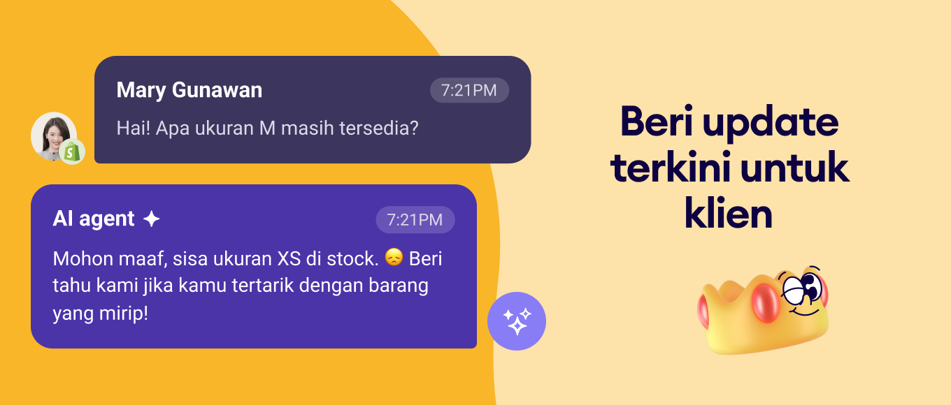 Automasi customer support: Menjawab FAQ, membagikan update pesanan, dan merekomendasikan produk.