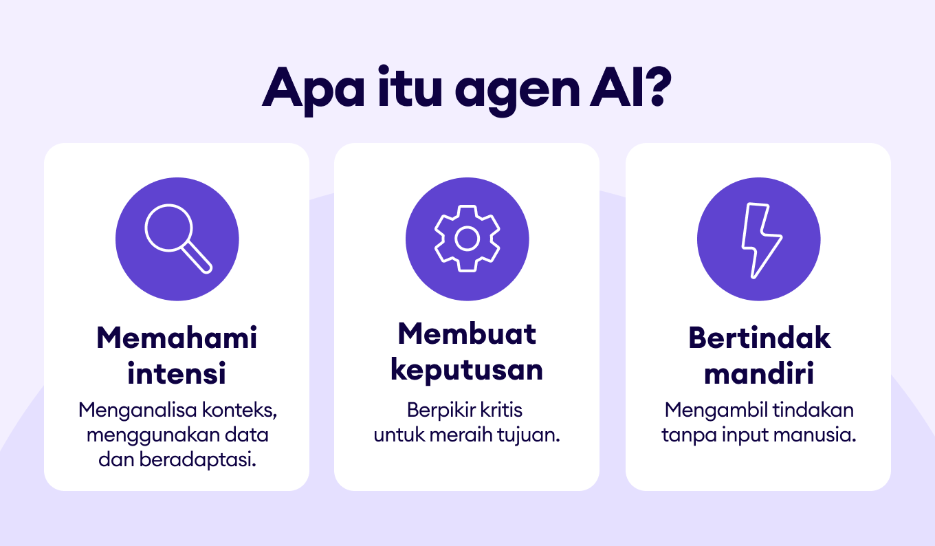 Belajar dan beradaptasi: Seiring waktu, agen AI meningkatkan kualitas keputusannya berdasarkan hasil dan riwayat interaksi.