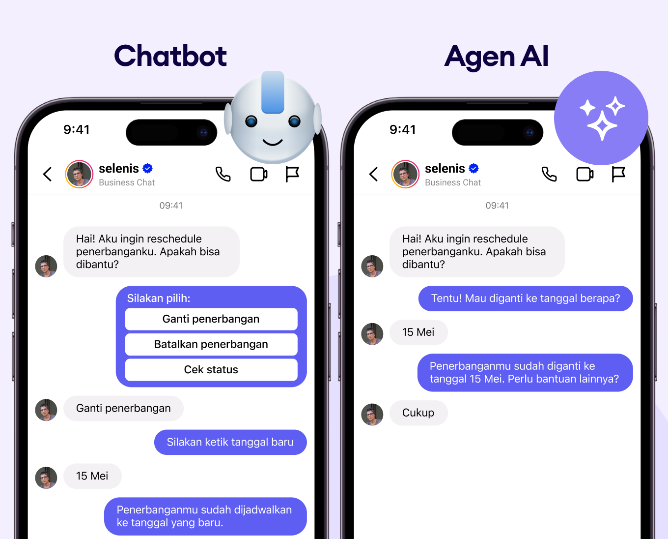 Memilih antara agen AI dan chatbot bergantung pada tujuan bisnismu serta tingkat kompleksitas percakapan yang kamu tangani.