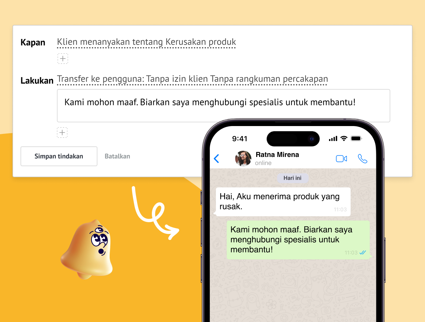 Gunakan logika Ketika/Lakukan untuk mengatur secara tepat bagaimana agen menanggapi berbagai situasi dari pelanggan.