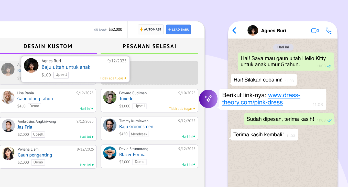 Ubah rasa penasaran menjadi pesanan yang terkonfirmasi dengan bantuan otomatis.