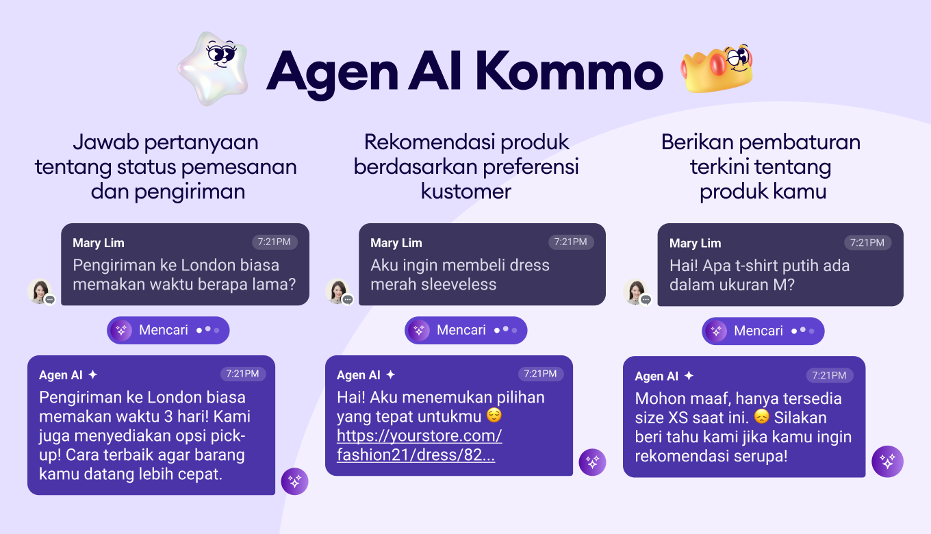 - Menjawab “Di mana pesanan saya?” atau “Paket saya sudah dikirim belum?” secara instan.