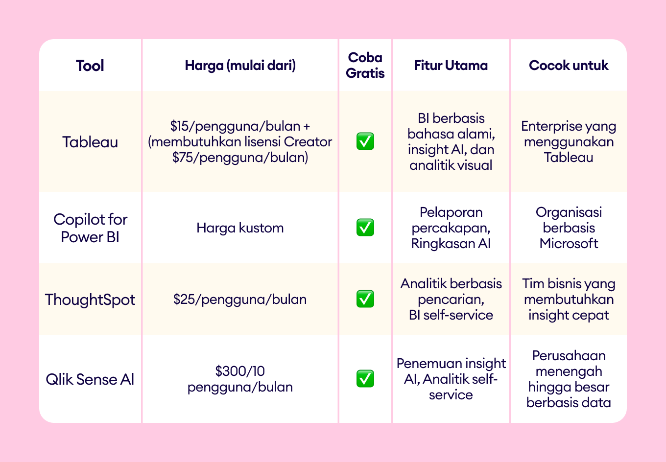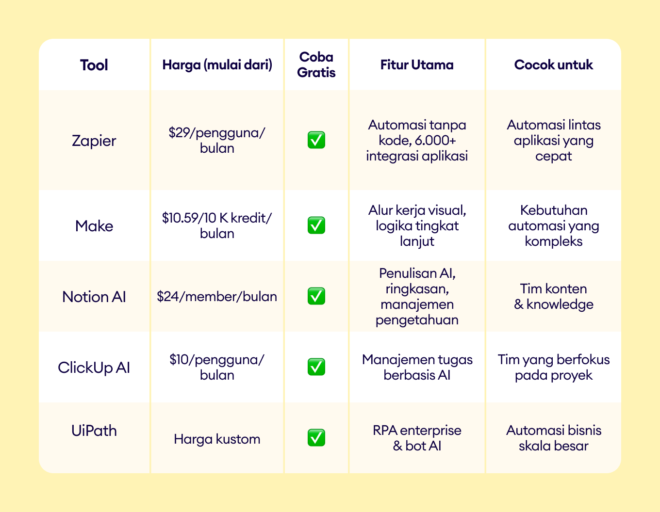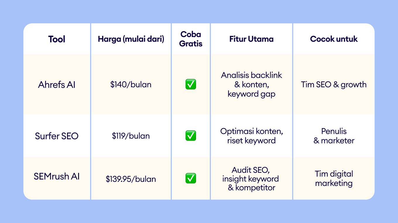 Pertimbangkan biaya & ROI: Manfaatkan masa uji coba gratis dan evaluasi peningkatan efisiensi sebelum berkomitmen jangka panjang.
