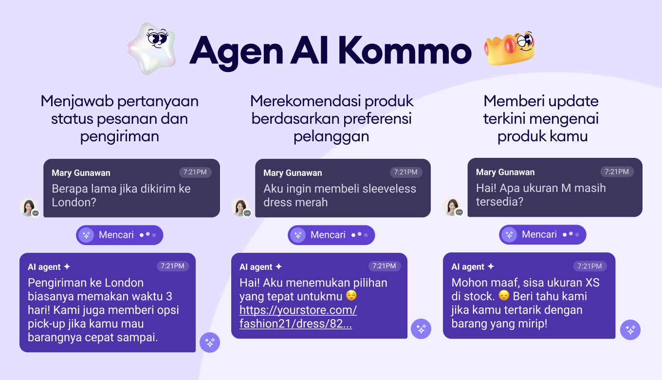 Mengapa mengelola banyak AI tools secara terpisah jika satu platform bisa menangani semuanya? Coba Kommo sekarang dan mulai bangun agen AI pertama kamu — gratis, tanpa perlu kartu kredit.