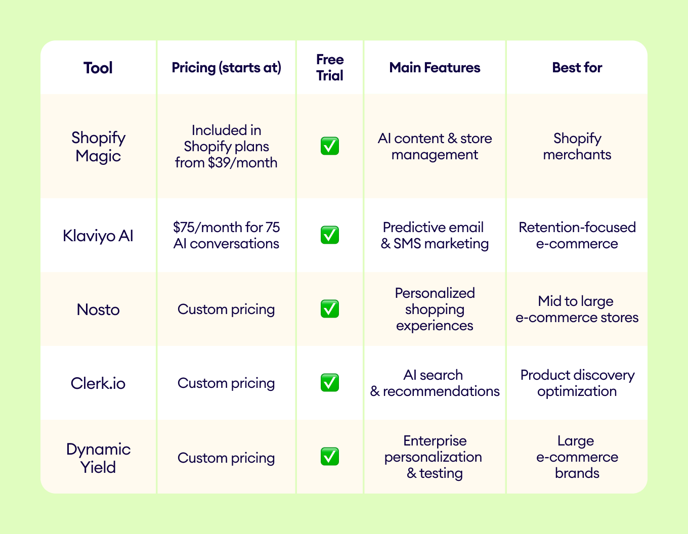 Seimbangkan kemudahan vs. fitur: Pilih tools yang sederhana untuk tim kecil seperti Tidio atau Shopify Magic. Untuk tim yang lebih besar atau teknis, pertimbangkan opsi lanjutan seperti Peltarion atau Dynamic Yield.