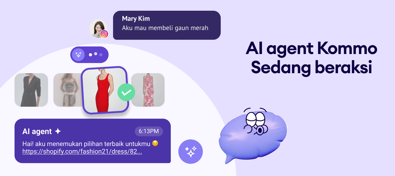 Agen AI Kommo dapat menangani pertanyaan berulang, memandu pengguna memilih produk, mengumpulkan informasi penting, atau meneruskan percakapan ke agen manusia saat dibutuhkan. Seiring waktu, agen AI belajar dari interaksi nyata dan menyesuaikan responsnya agar selaras dengan tone brand dan proses sales kamu.