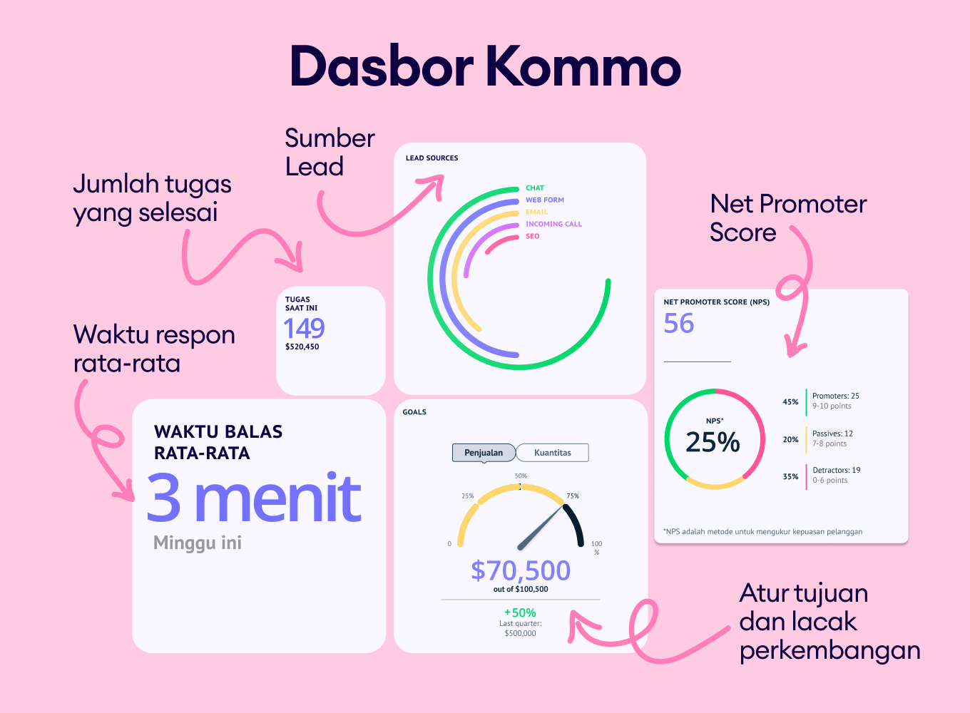 Kommo adalah CRM berbasis AI untuk bisnis dan tim yang ingin meningkatkan revenue melalui automasi. Dengan Kommo, kamu bisa membuat percakapan jadi lebih cepat dan efisien di Instagram, WhatsApp, TikTok, dan berbagai channel komunikasi lainnya.