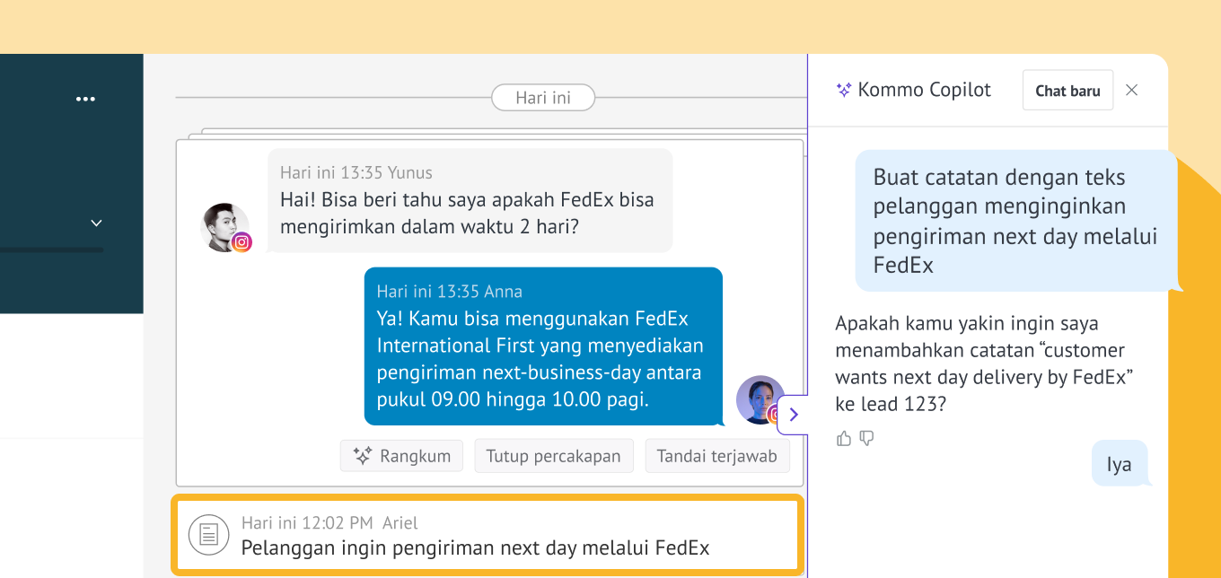 Smart task management: Mengubah percakapan menjadi follow-up yang bisa ditindaklanjuti, memastikan tidak ada peluang yang terlewat.