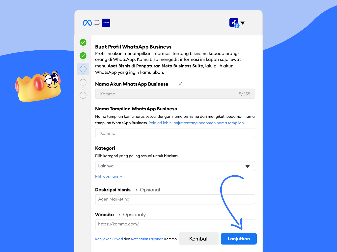 1. Isi informasi yang dibutuhkan untuk profil WhatsApp Business barumu dan klik Berikutnya.