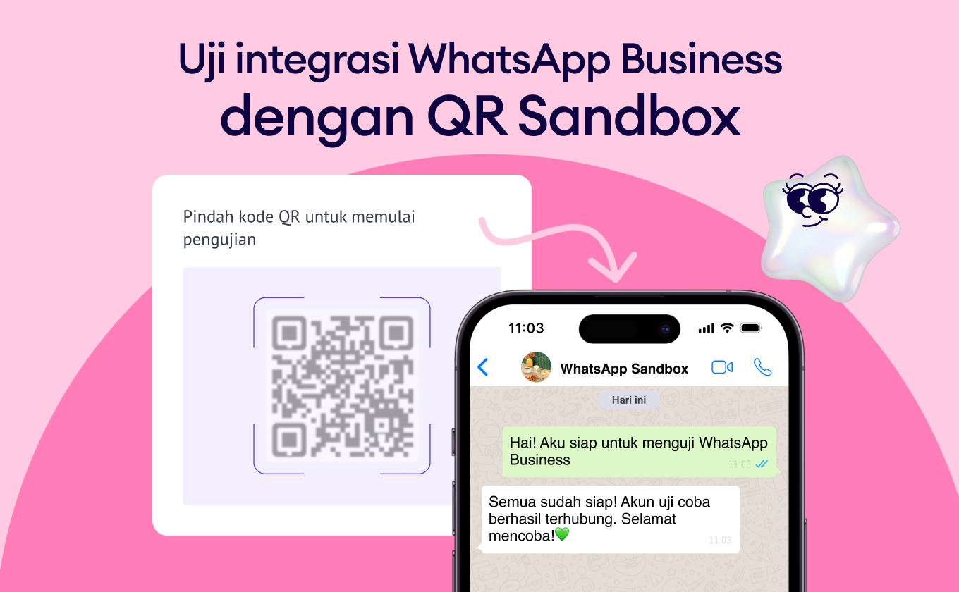 Uji integrasi WhatsApp Business dengan QR Sandbox.
