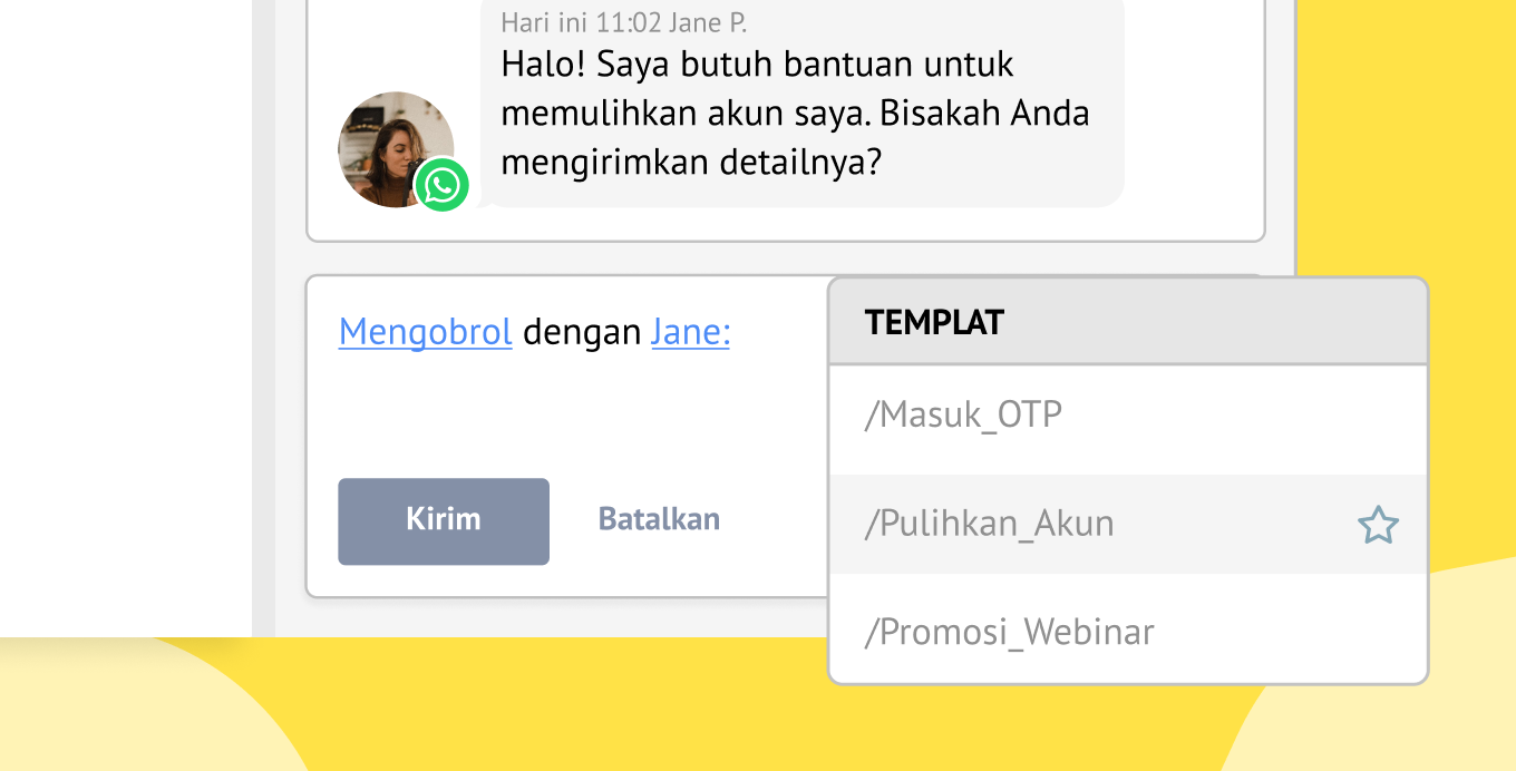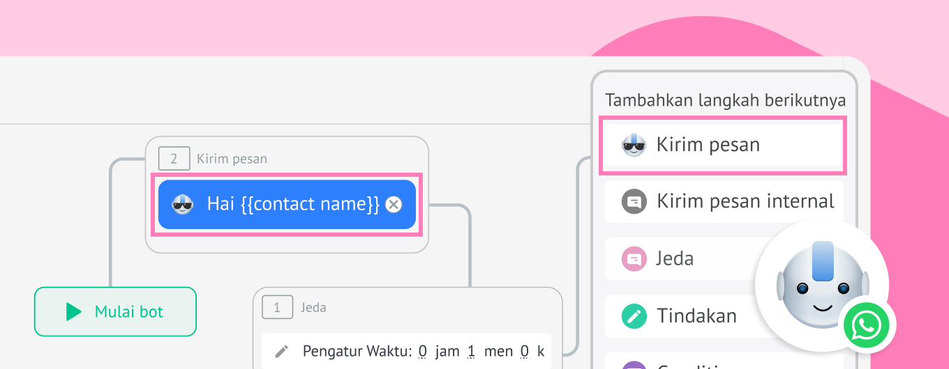 Personalisasi dalam skala besar: Template mendukung variabel, sehingga kamu bisa mempersonalisasi pesan dengan nama, kode, atau data spesifik pengguna lainnya, sambil tetap menjaga sentuhan personal dalam alur otomatis. -