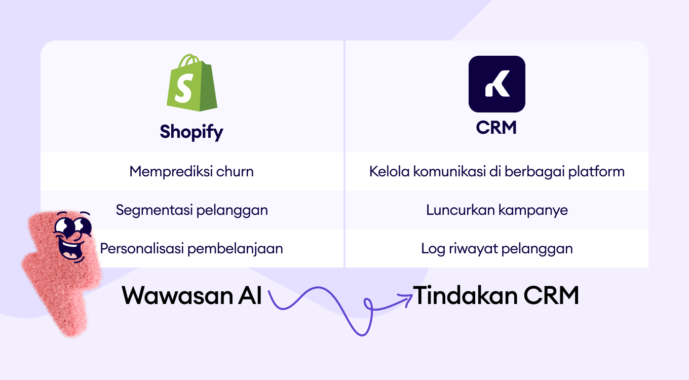 1. Shopify AI mengidentifikasi, tapi CRM yang mengelola hubungan.