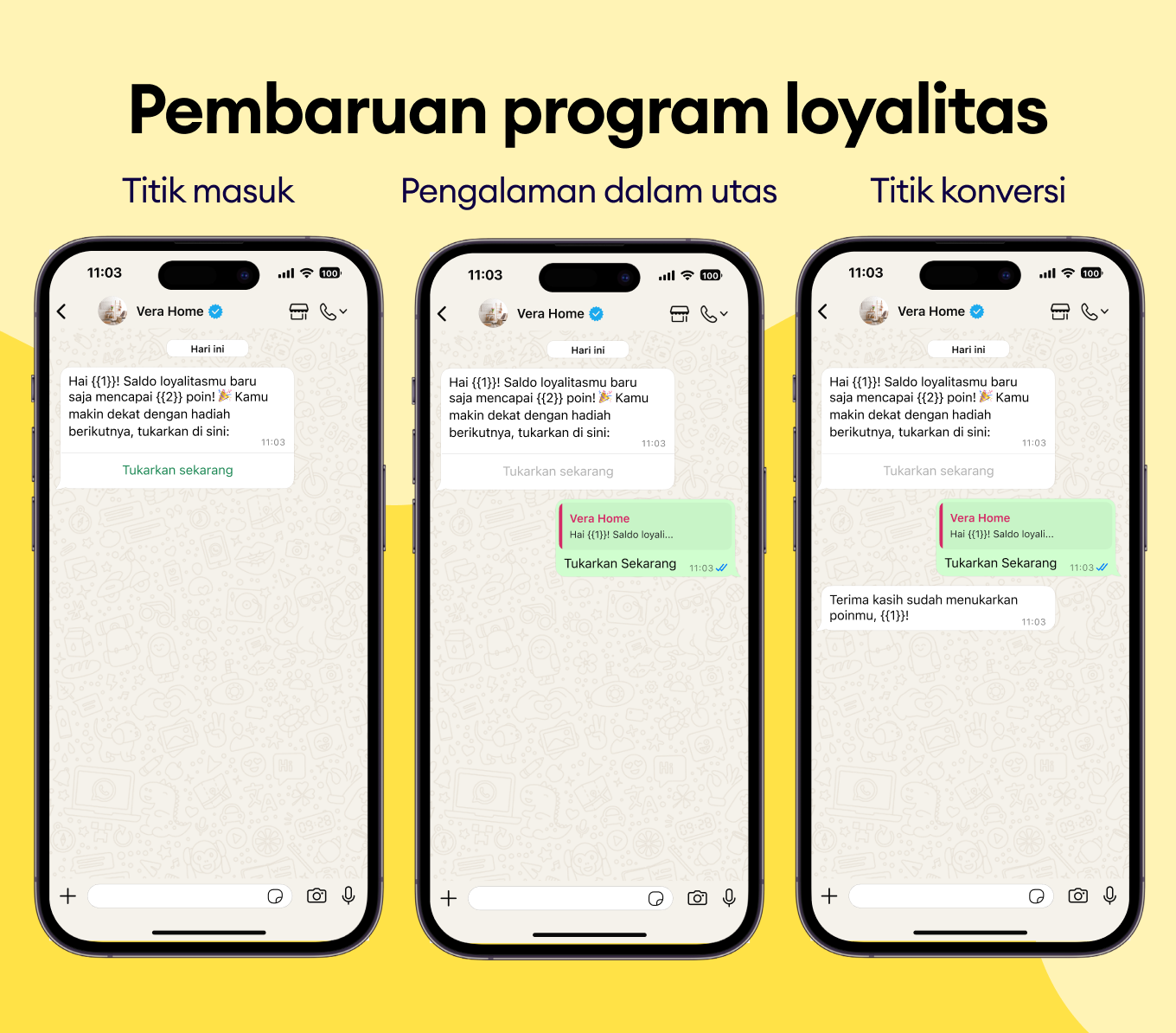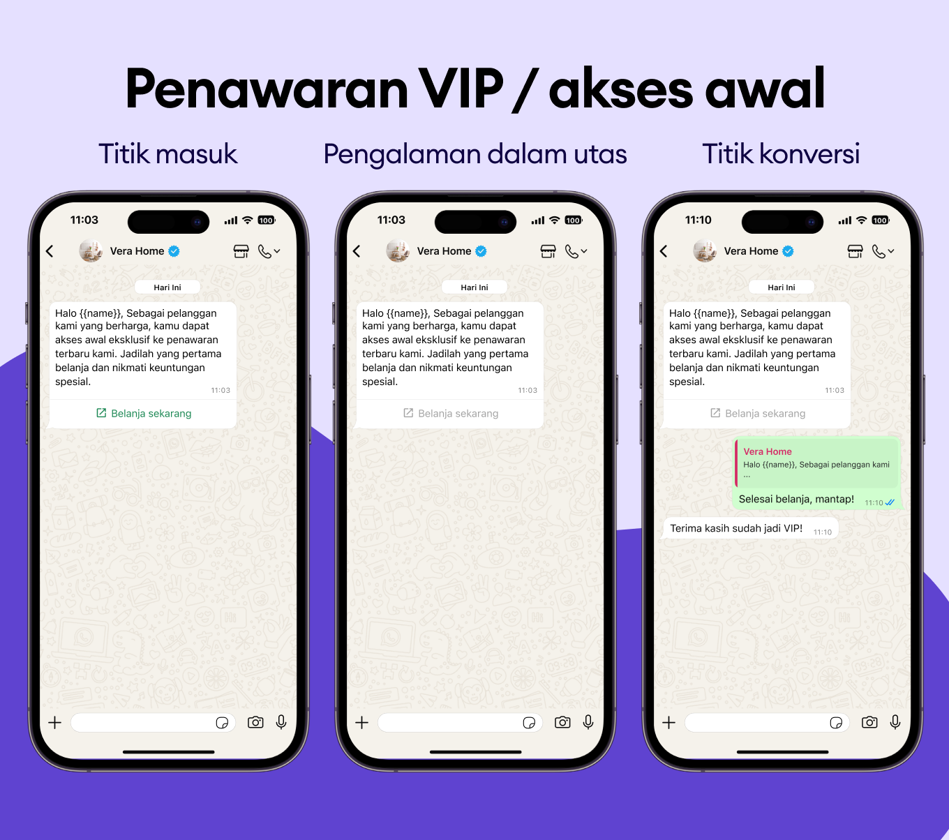 Ada koleksi baru atau peluncuran eksklusif? Berikan pelanggan terbaik kamu akses pertama melalui template WhatsApp. Buat mereka merasa spesial.