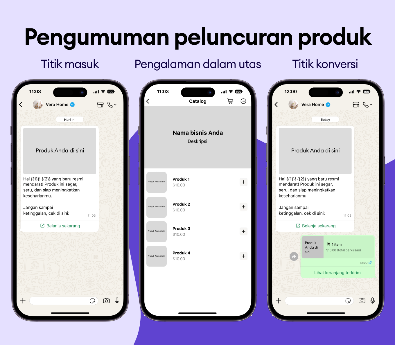 Luncurkan koleksi baru kamu dengan foto produk dan tombol “Belanja Sekarang” yang langsung menuju checkout.