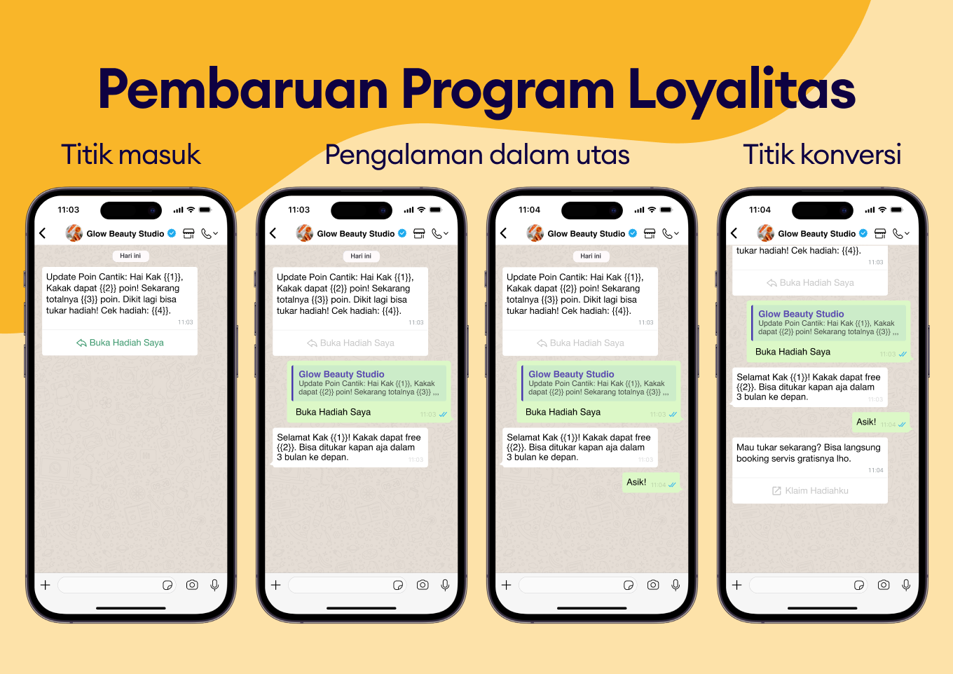 Libatkan klien dengan pengingat personal tentang poin reward atau bonus melalui template pesan WhatsApp.