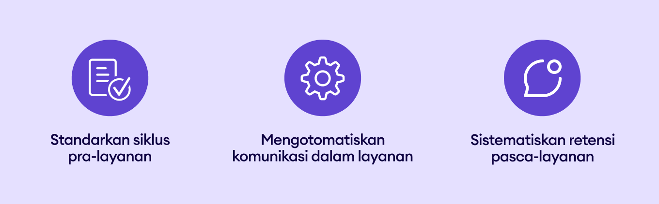 Bantu pelanggan tetap tepat jadwal dengan pengingat otomatis untuk janji temu mendatang, dokumen, atau servis terjadwal.