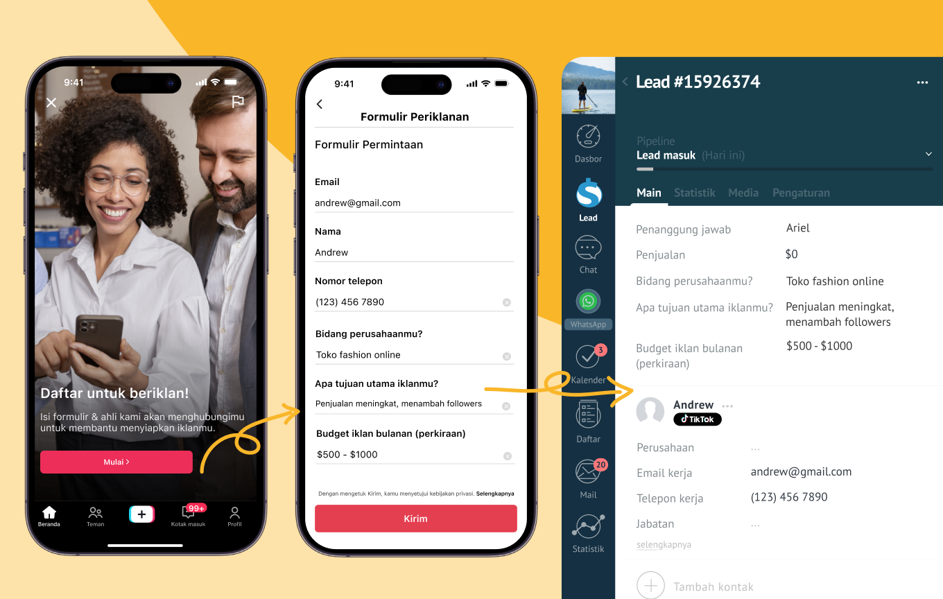 Dengan menghubungkan TikTok Ads Manager ke CRM, kamu bisa: