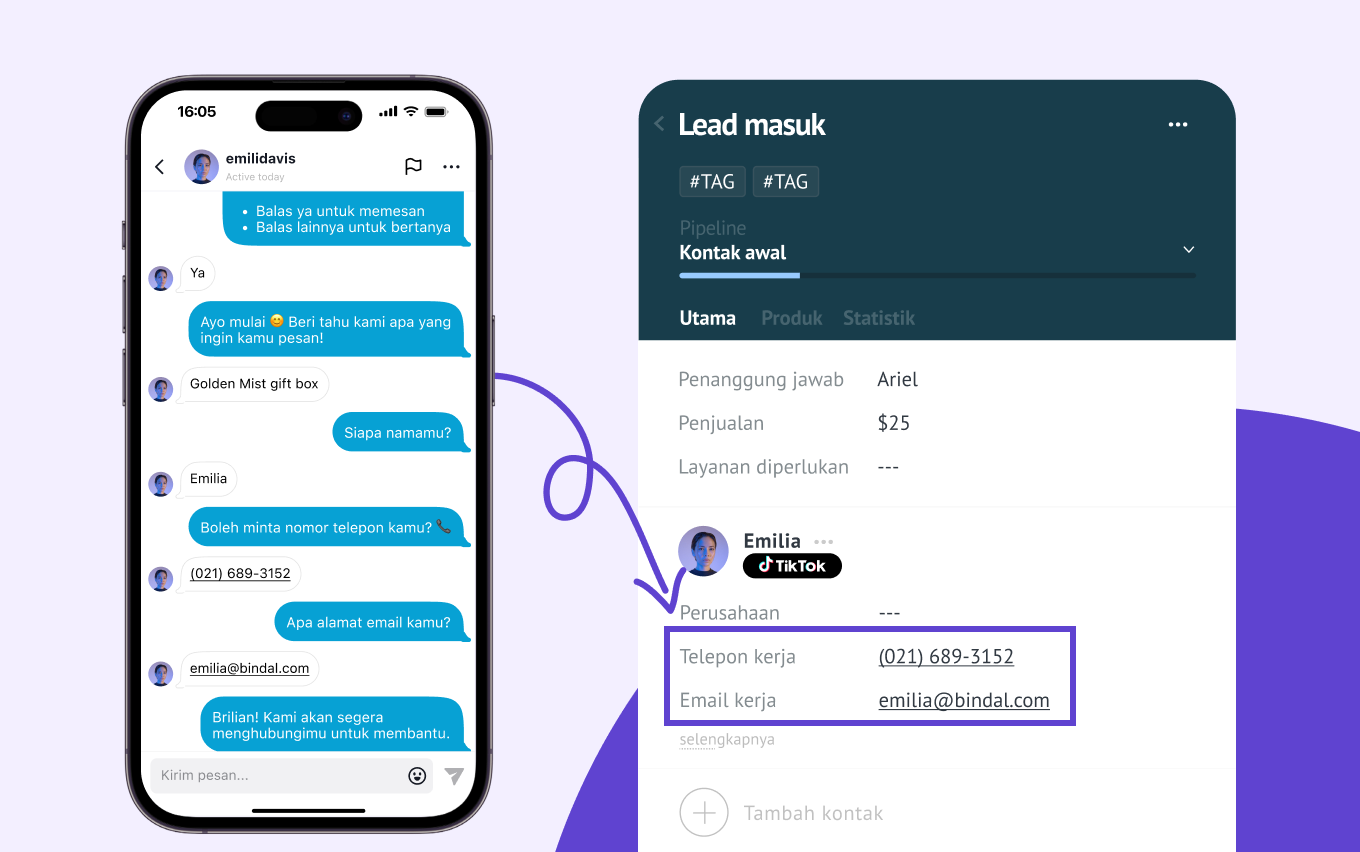 Hubungkan akun TikTok kamu ke CRM terdepan seperti Kommo
