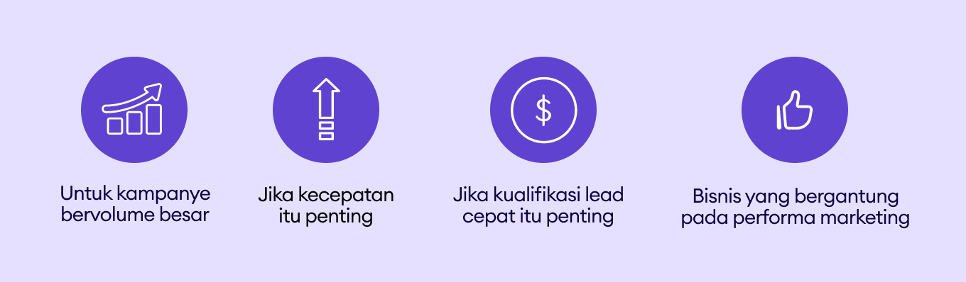 - Workflow DM terstruktur dan diotomatisasi untuk skala yang lebih besar.