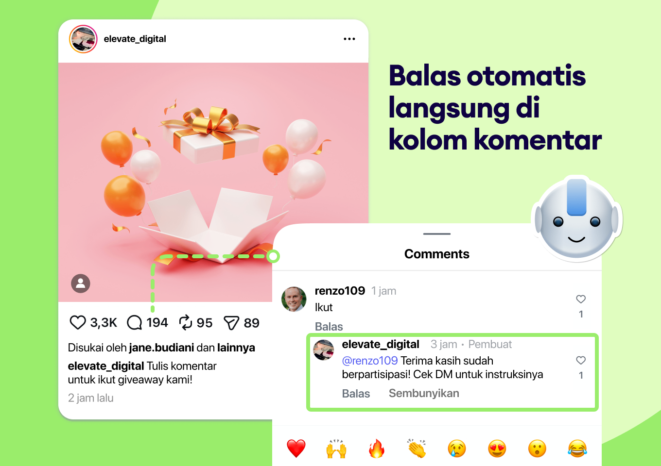 Mengubah komentar publik menjadi percakapan privat secara instan melalui balasan otomatis.