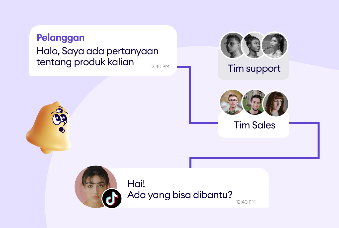 Secara otomatis menetapkan percakapan ke sales rep atau tim yang tepat.