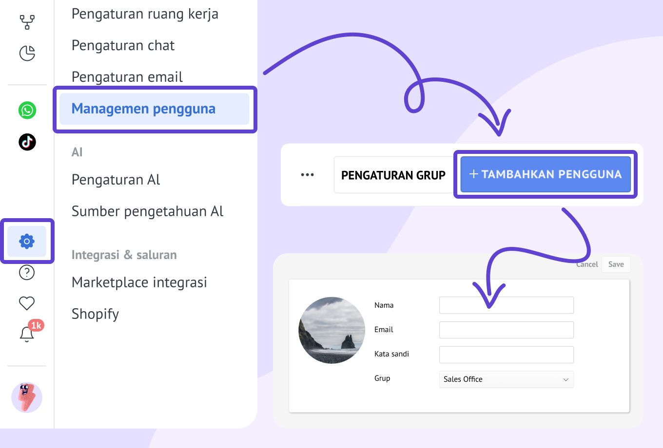 Menambahkan pengguna di Kommo CRM