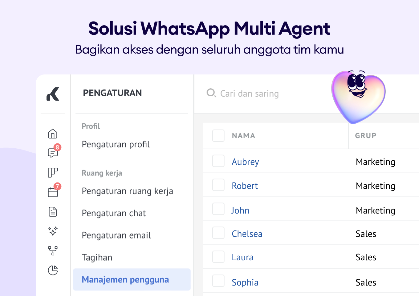 Kamu dapat mengelola percakapan pelanggan di berbagai perangkat dan memberikan layanan pelanggan yang lebih baik.