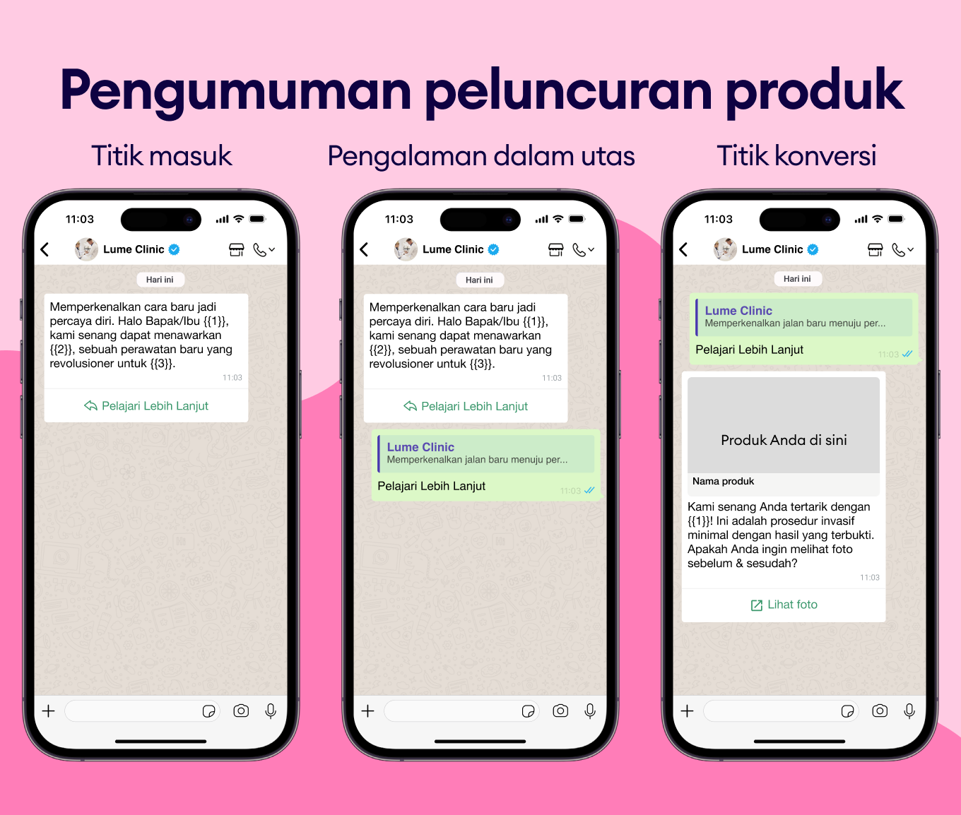 Soroti produk atau layanan terbaru kamu melalui template pesan WhatsApp berbentuk gambar untuk menarik perhatian secara instan.