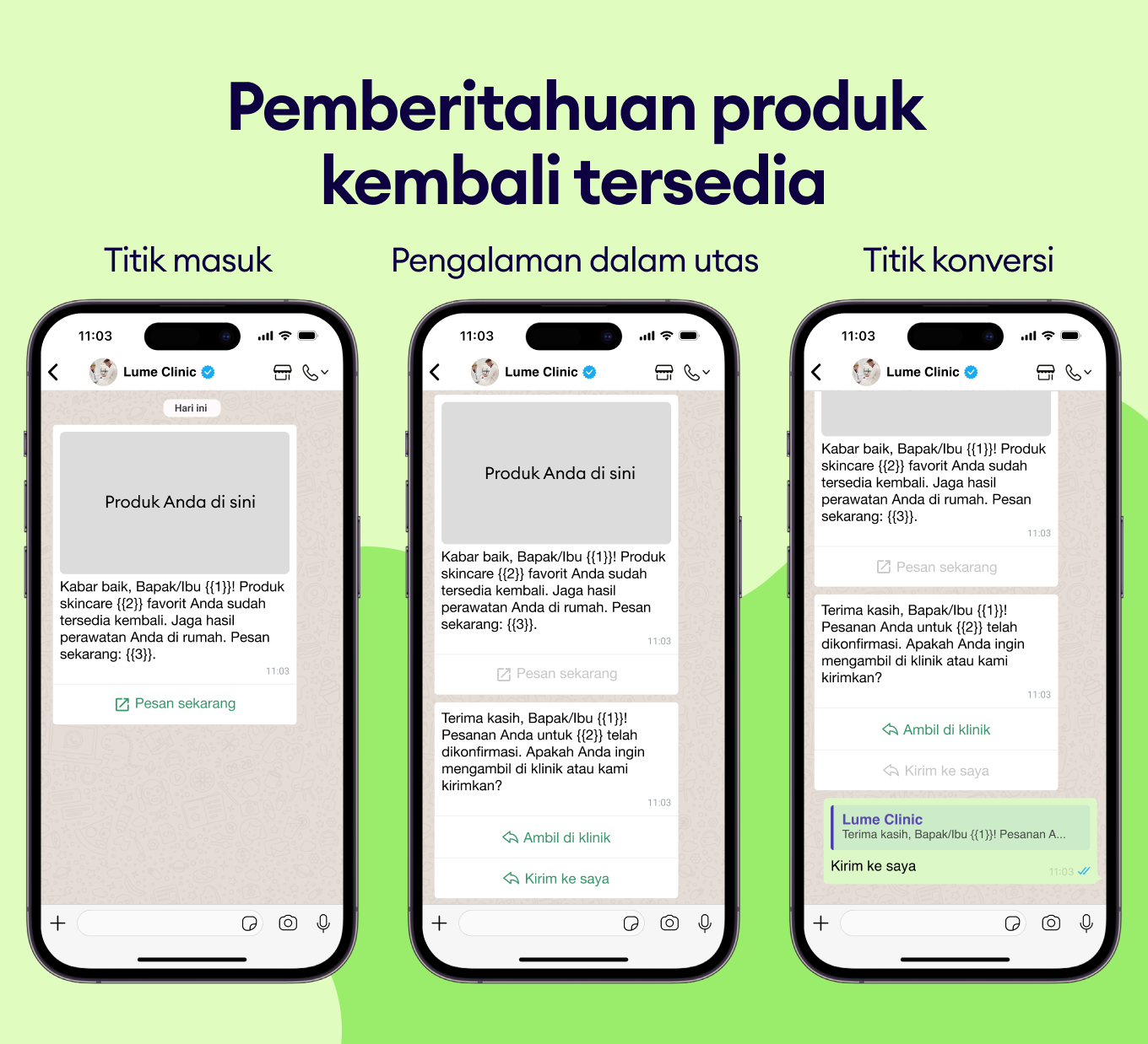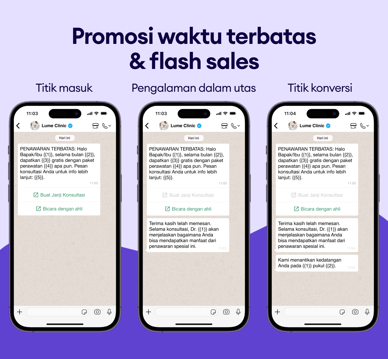 Berikan akses eksklusif lebih awal melalui pesan WhatsApp yang dipersonalisasi.