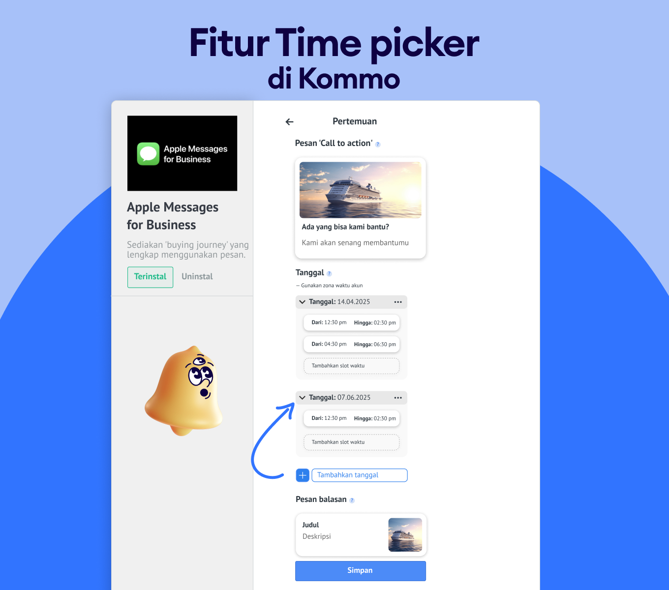 • Sinkronisasi kalender: Fitur Time Picker dari Apple memudahkan penjadwalan, sementara Kommo mengotomatiskan tindak lanjut dan menyinkronkan kalender dengan mulus.