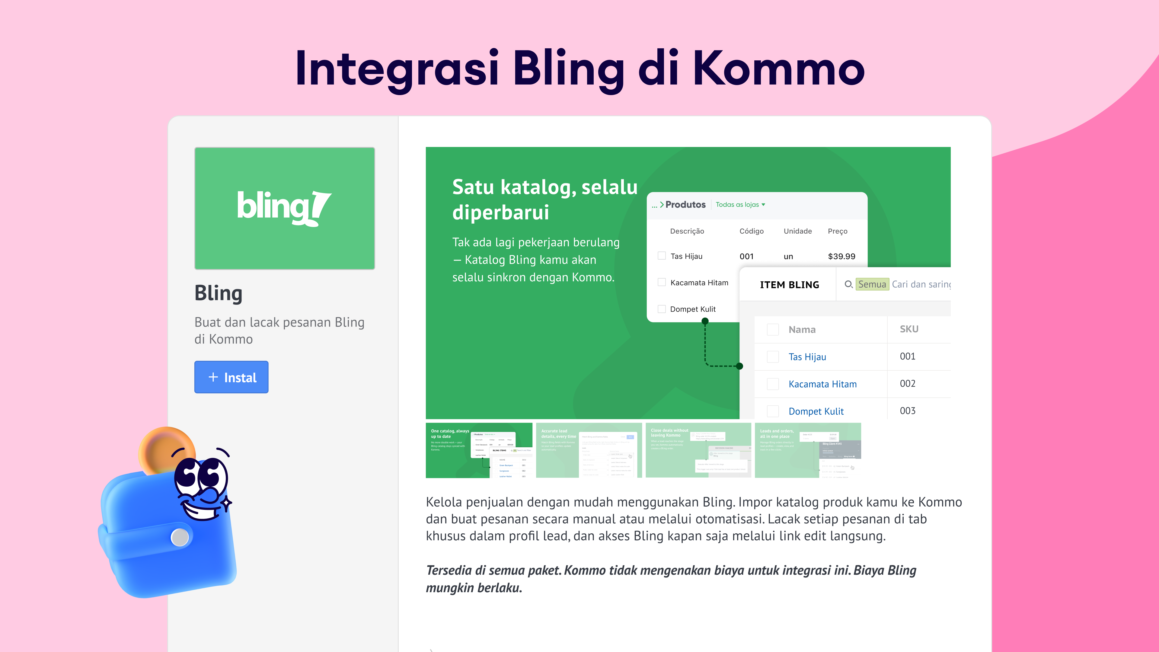 Buka Settings > Integrations > cari Bling > Install.