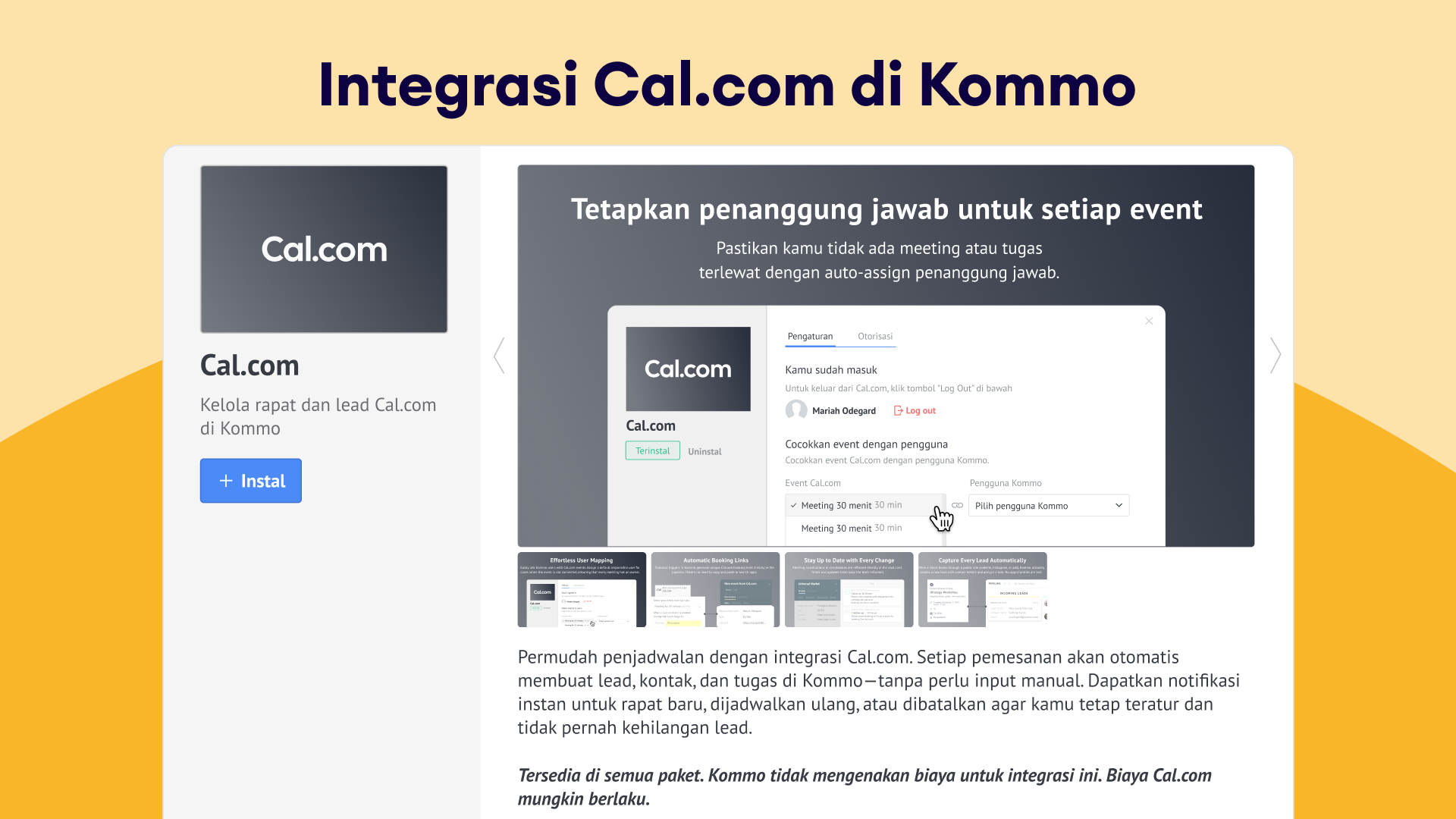 Menghubungkan Cal.com ke Kommo sangat mudah: