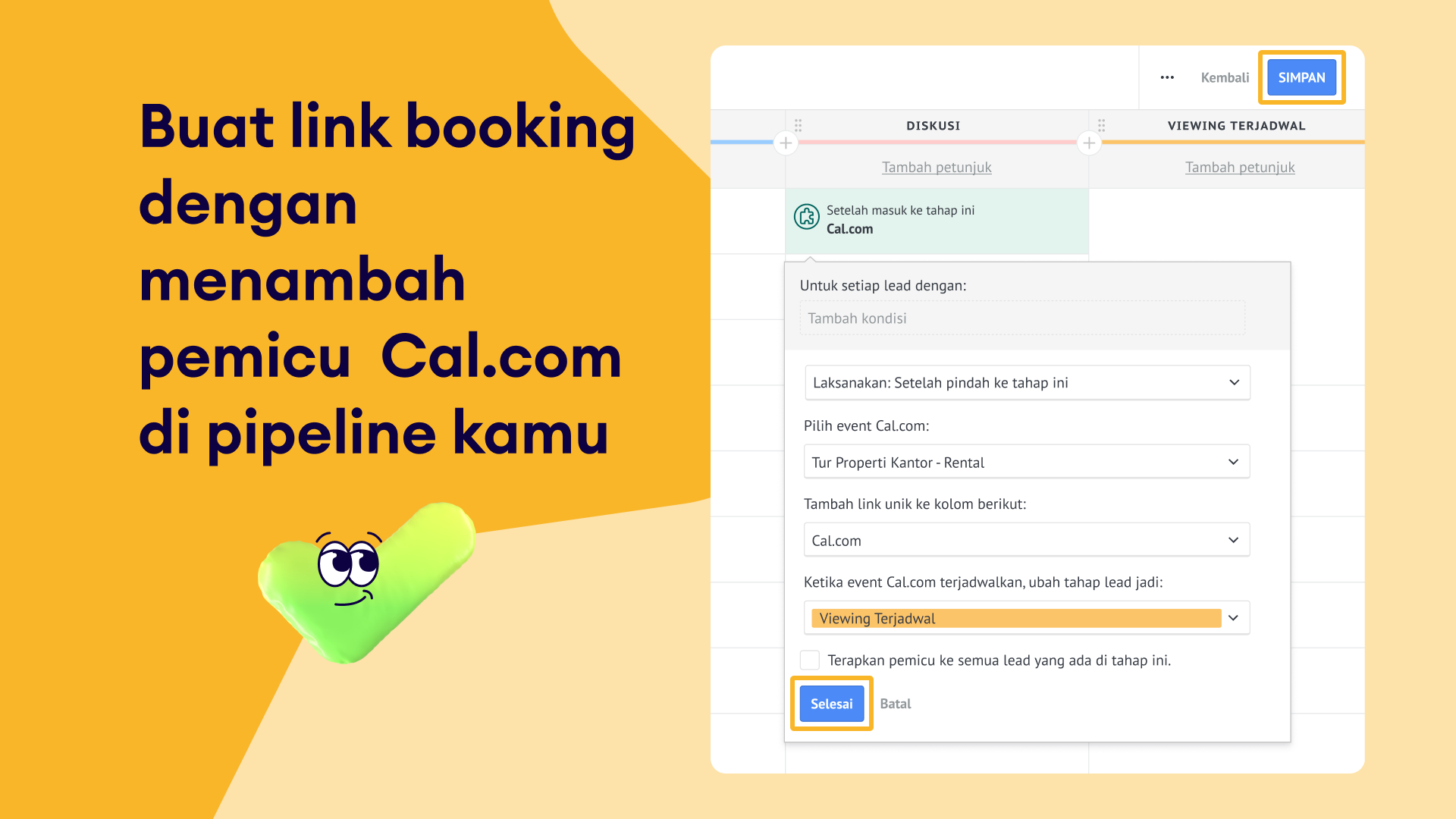 - Siapkan pemicu di pipeline kamu untuk secara otomatis membuat tautan pemesanan yang dipersonalisasi bagi leads.