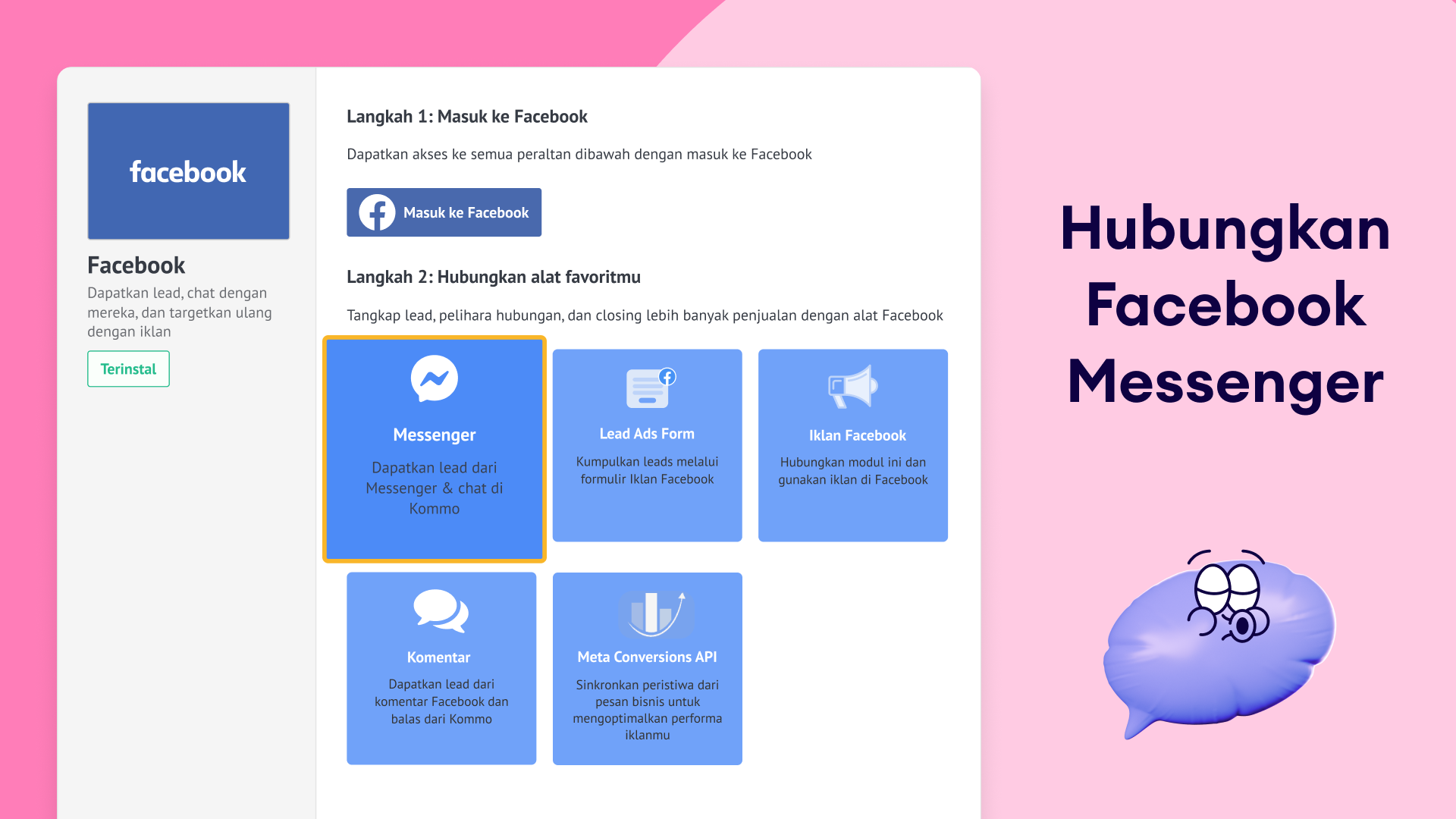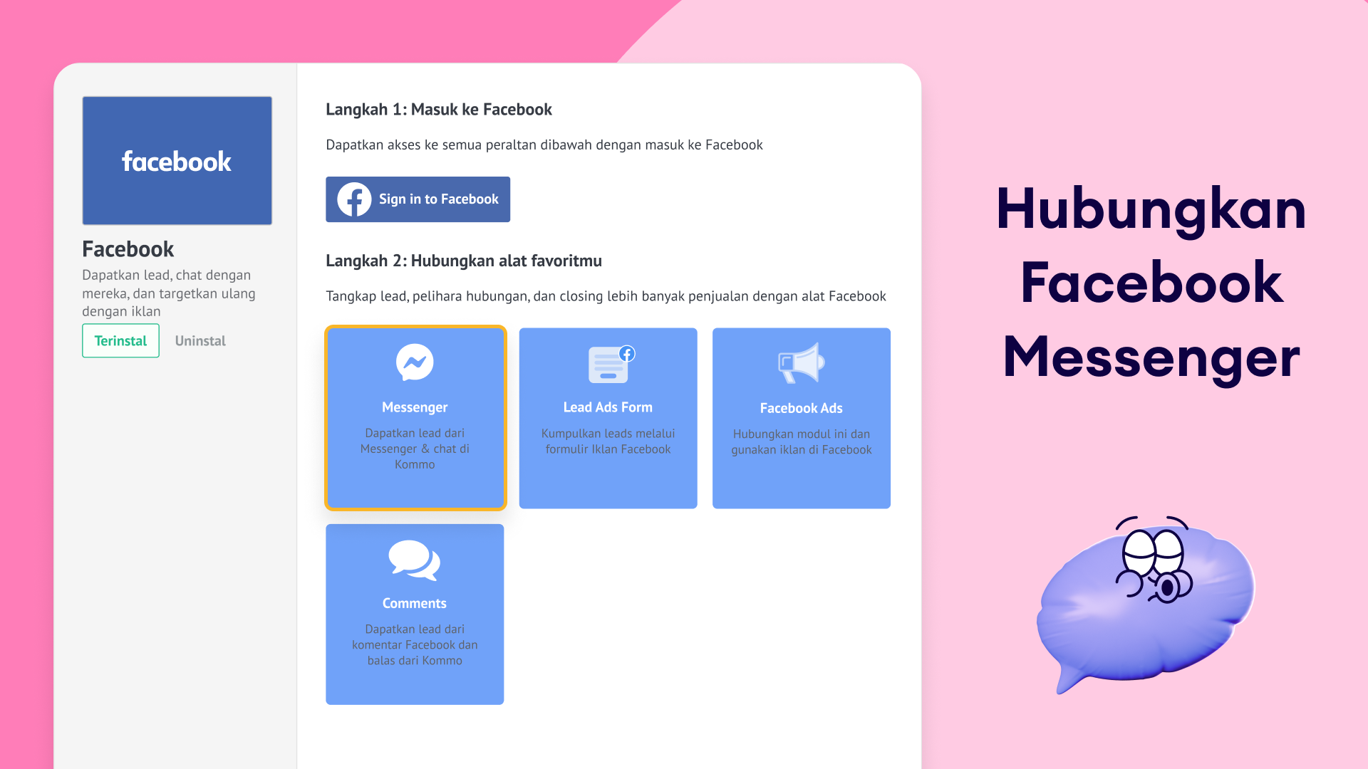 Untuk menghubungkan Facebook Messenger, ikuti langkah-langkah ini:
