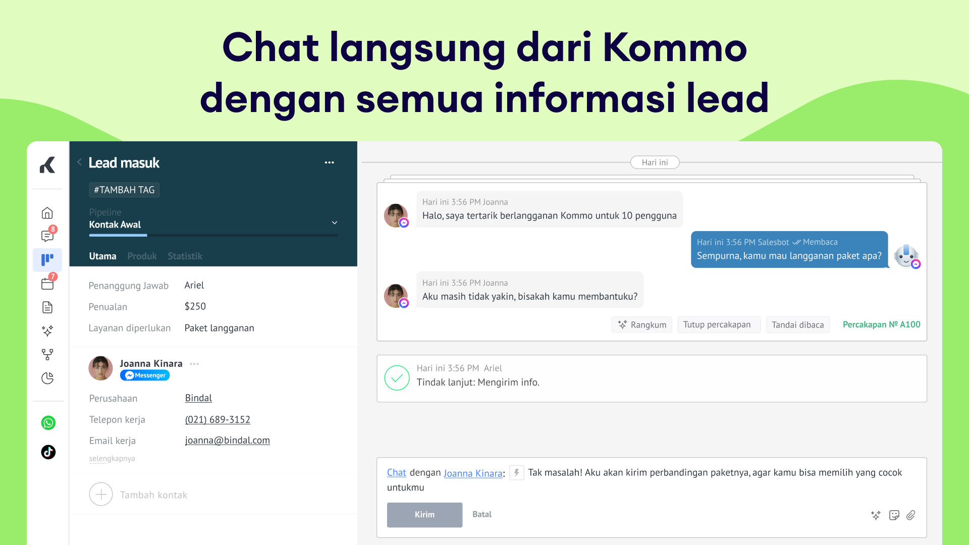 Dengan semuanya dalam satu tempat, tim bisa merespons lebih cepat, otomatisasi lebih cerdas, dan menutup leads dengan cara yang lebih natural — tanpa harus pindah-pindah tools atau kehilangan konteks.
