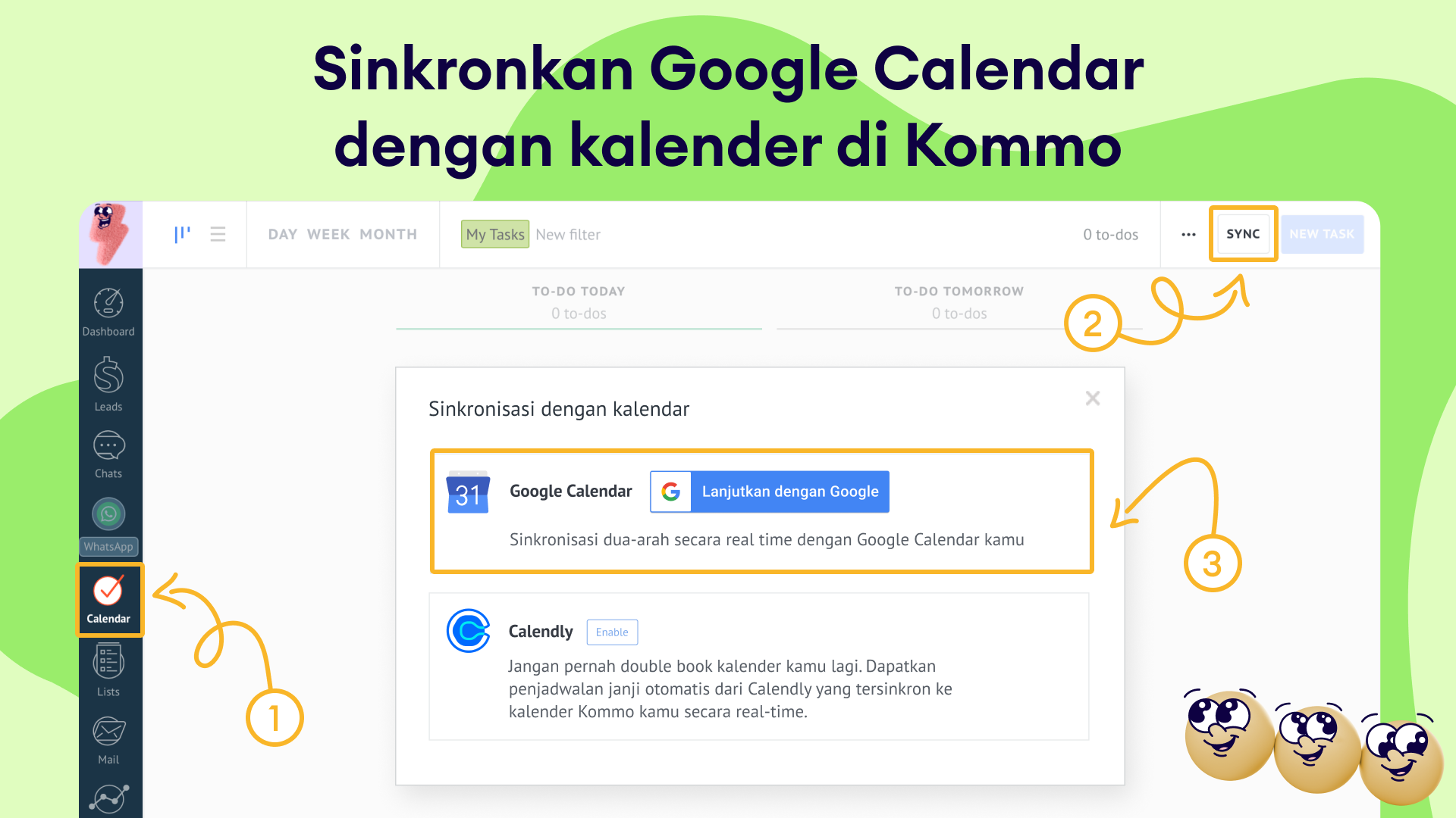 Karena ini menyederhanakan scheduling. Sinkronisasi dua arah yang mulus mengurangi update manual dan menjaga semuanya tetap selaras, bahkan di ponsel. Baik kamu menjadwalkan dari Kommo maupun langsung di kalender, meeting dan tugas selalu sinkron — jadi kamu bisa lebih fokus menutup penjualan daripada sibuk mengutak-atik tools.