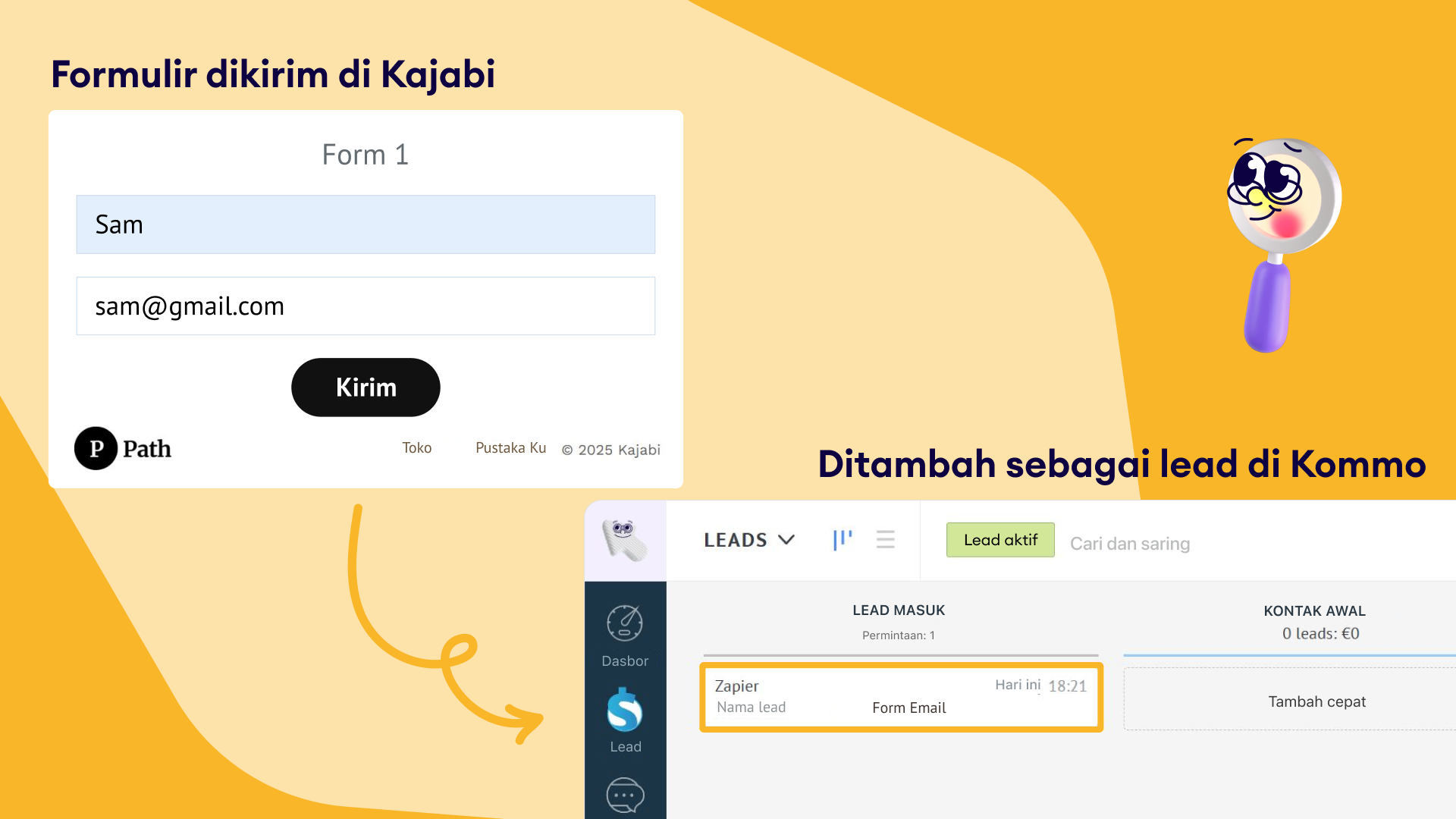 Sekarang kamu siap mengubah setiap interaksi Kajabi menjadi aksi CRM otomatis 📚