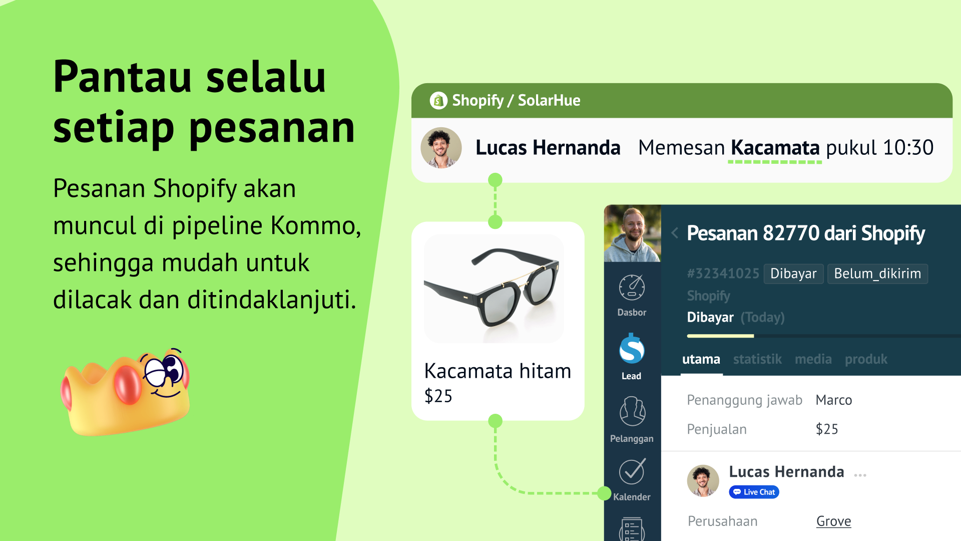 Temukan cara pintar memanfaatkan integrasi Shopify di Kommo untuk meningkatkan penjualan, mengotomatisasi operasional, dan mempersonalisasi pengalaman pelanggan: