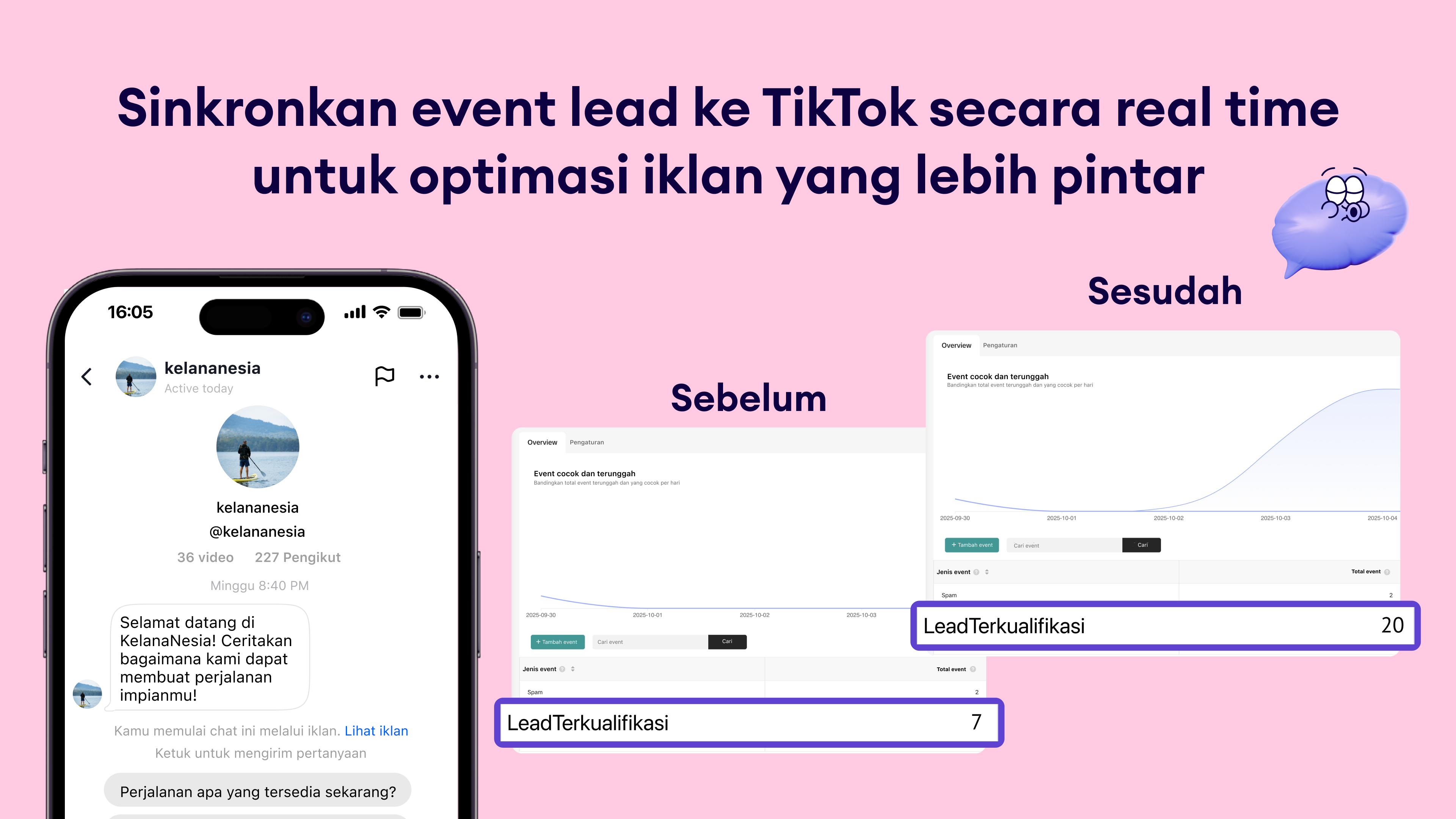 Pengguna Kommo menyukai bagaimana integrasi ini mengubah TikTok menjadi mesin lead generation yang kuat. Mulai dari Instant Forms hingga iklan Pesan Instan, setiap interaksi berubah menjadi lead berkualitas — ditangkap secara instan, diperkaya, dan diarahkan ke pipeline yang tepat. Dengan event set yang mengirimkan insight real time kembali ke TikTok dan Kommo yang mengotomatiskan setiap tindak lanjut, tim dapat mengubah engagement menjadi percakapan yang bermakna lebih cepat dari sebelumnya.