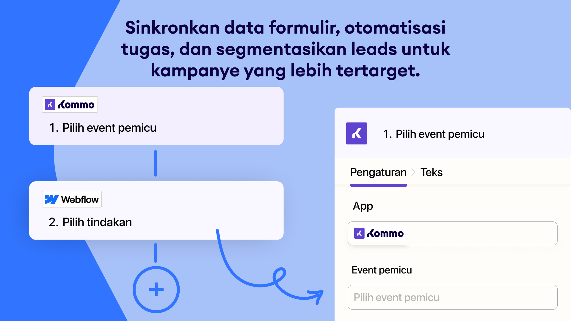 Data sync: Sinkronisasi otomatis field form Webflow ke Kommo untuk memusatkan manajemen kontak.