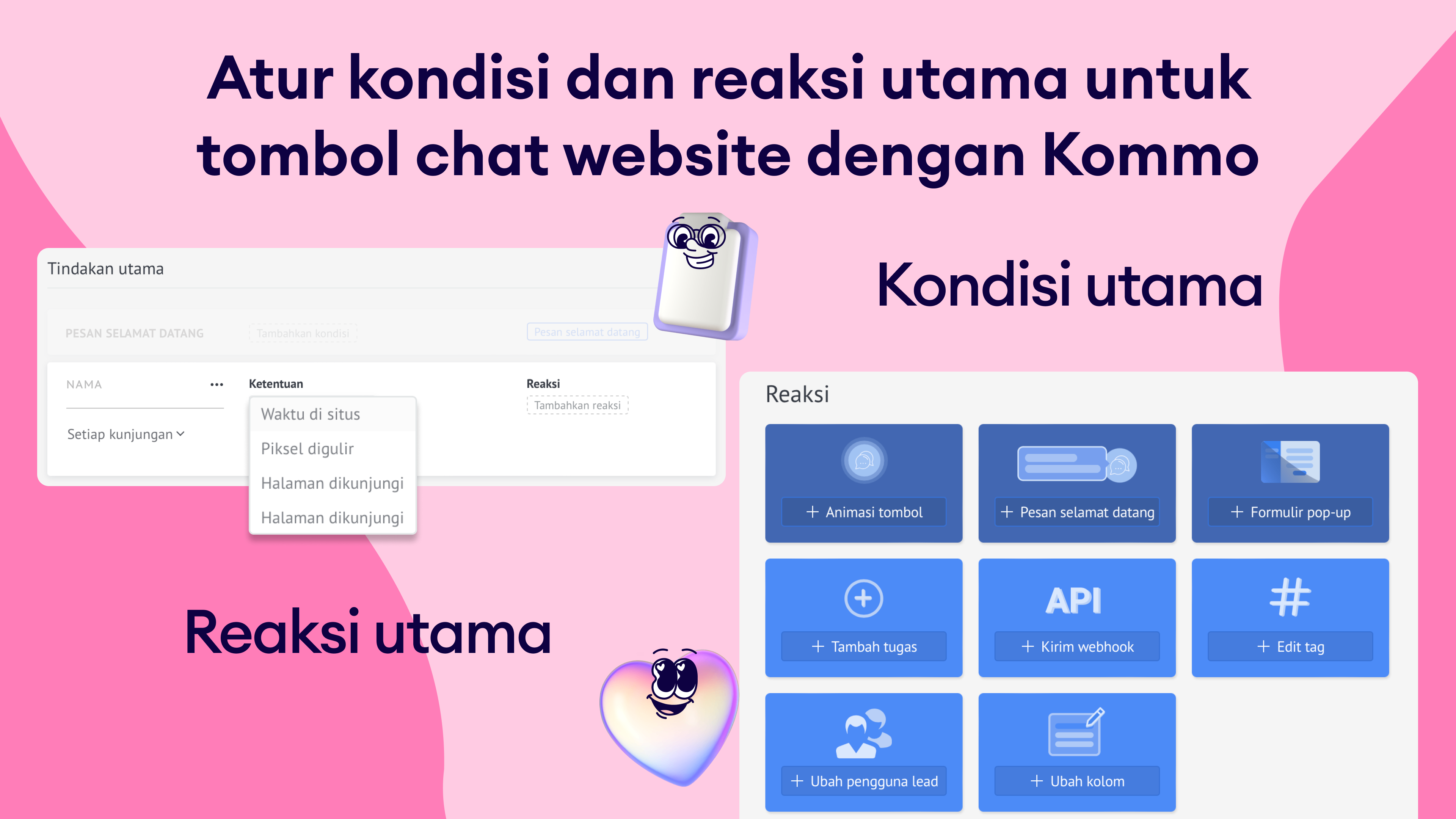 Integrasi website chat button (tombol chat Website) memungkinkan kamu terhubung dengan pengunjung begitu mereka masuk ke situs kamu. Setiap percakapan otomatis jadi leads di Kommo, sehingga kamu bisa melacak interaksi, merespon dengan cepat, dan tetap terhubung dengan calon pelanggan. Dipadukan dengan otomatisasi dan chatbot, integrasi ini memastikan respon yang cepat dan komunikasi yang lebih efisien.