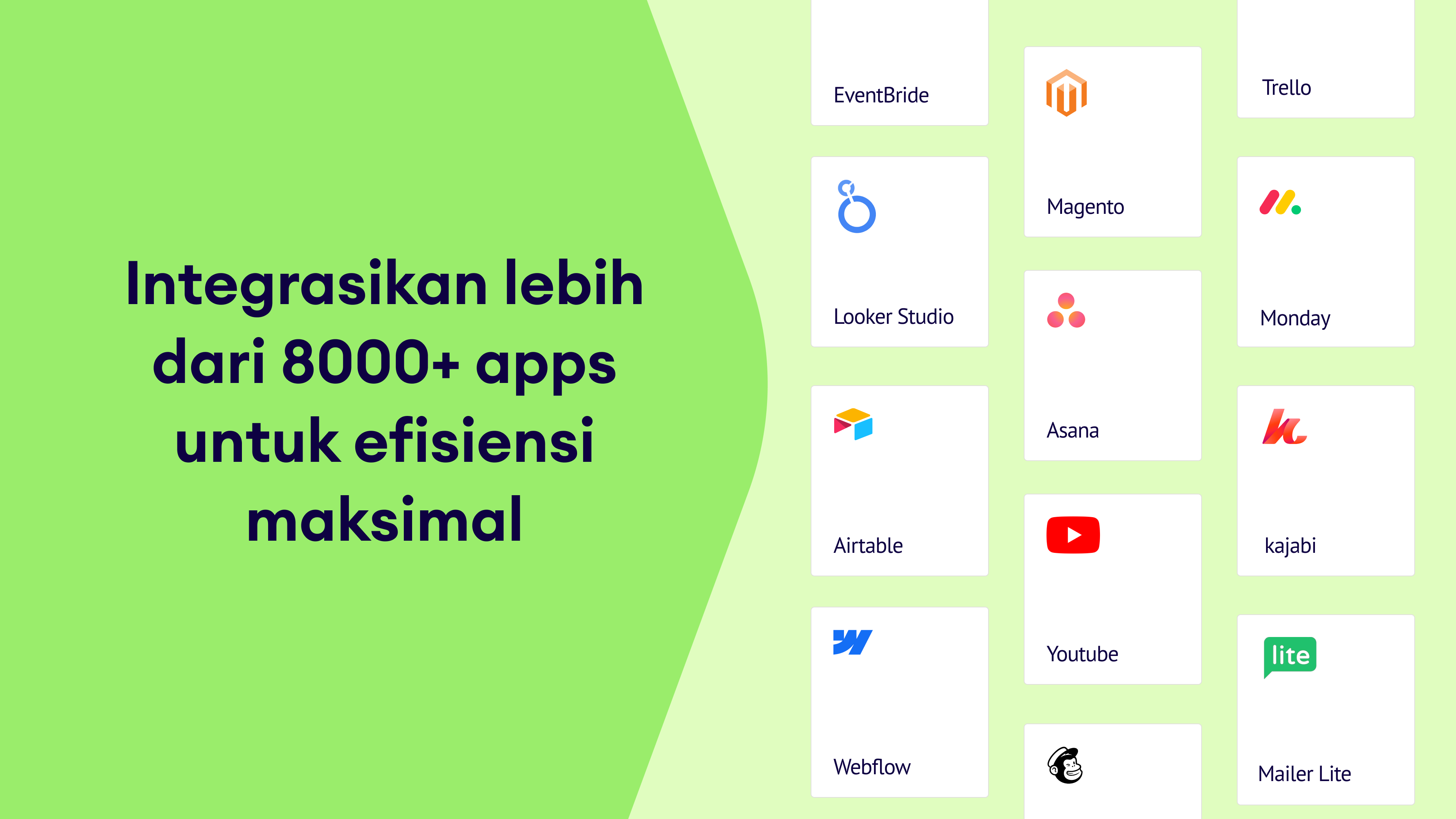 Gunakan integrasi ini untuk mengotomatiskan workflow dan menghubungkan aplikasi favorit kamu dengan mulus: