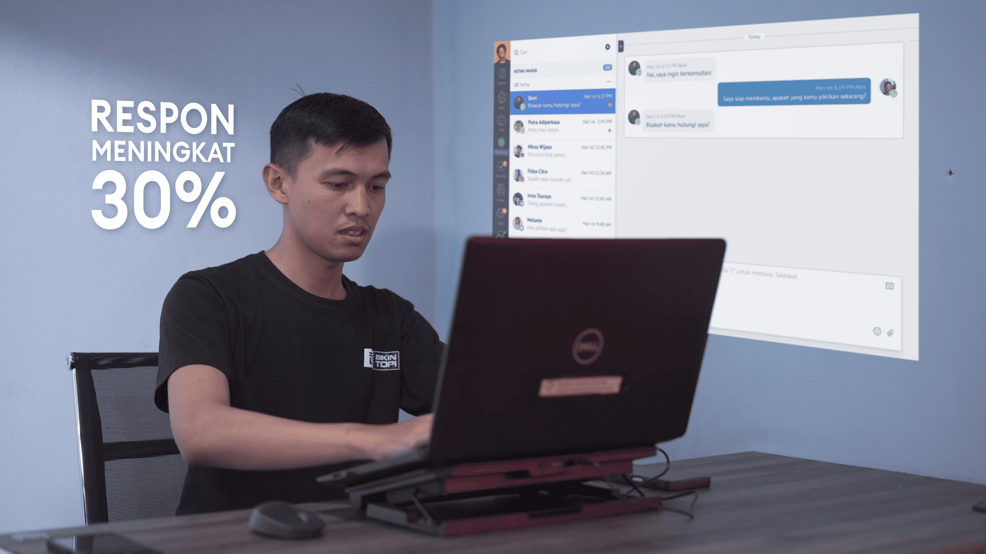 Setelah menggunakan Kommo CRM, koordinasi tim BikinTopi menjadi lebih terstruktur, efisiensi meningkat, posting rate naik hingga 25%, dan respon terhadap leads meningkat sampai 30%.