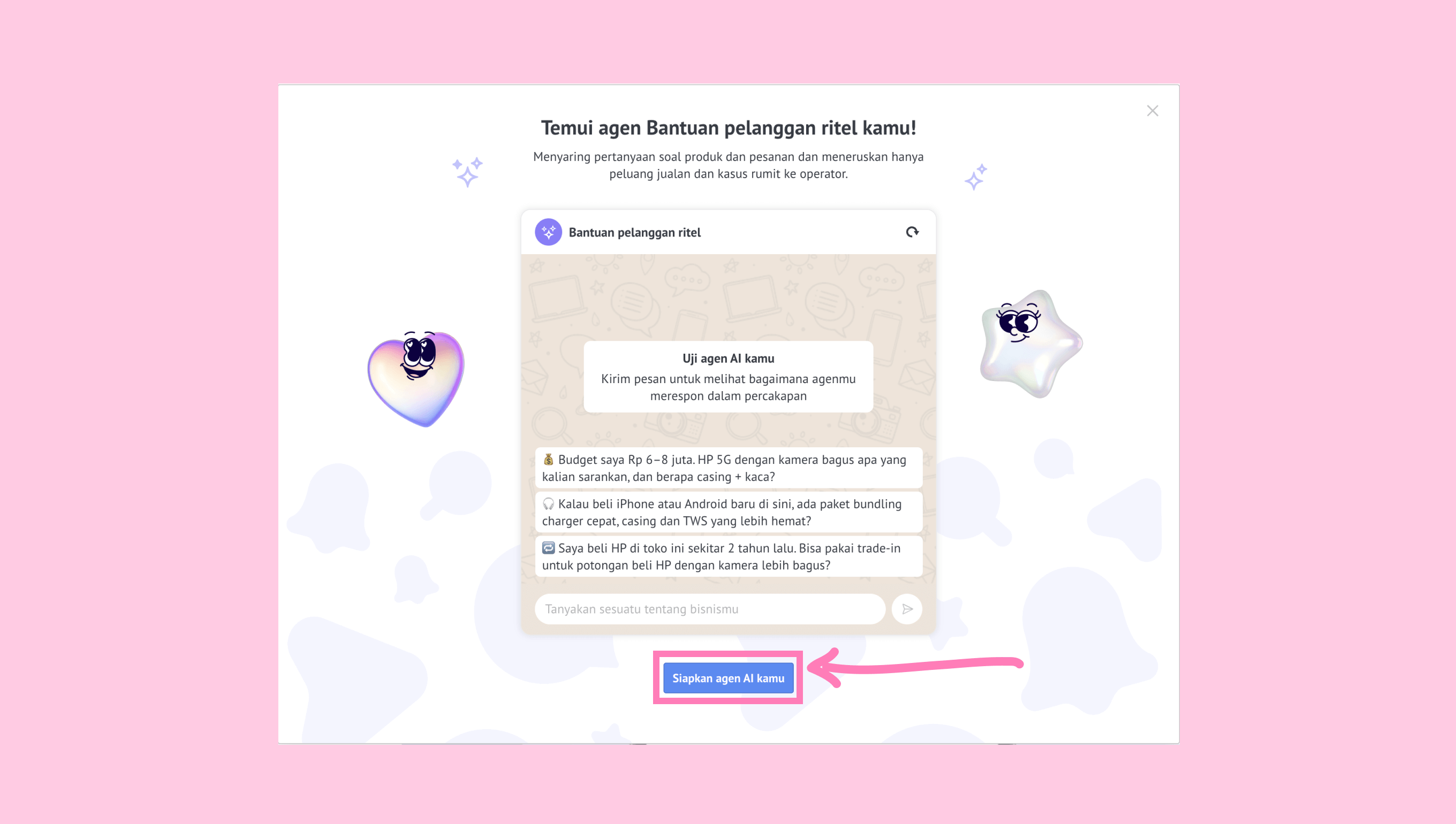 Klik Siapkan agen AI kamu untuk melanjutkan.