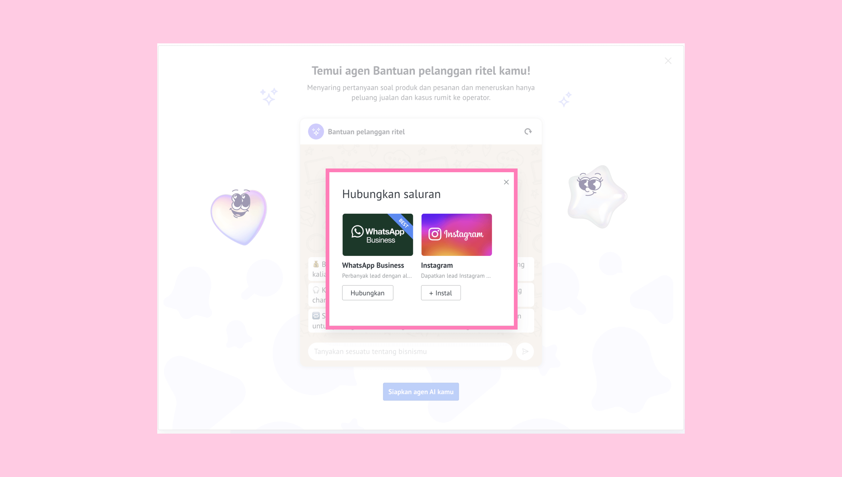 - Hubungkan setidaknya satu saluran (misal: WhatsApp Business, Instagram, dll).